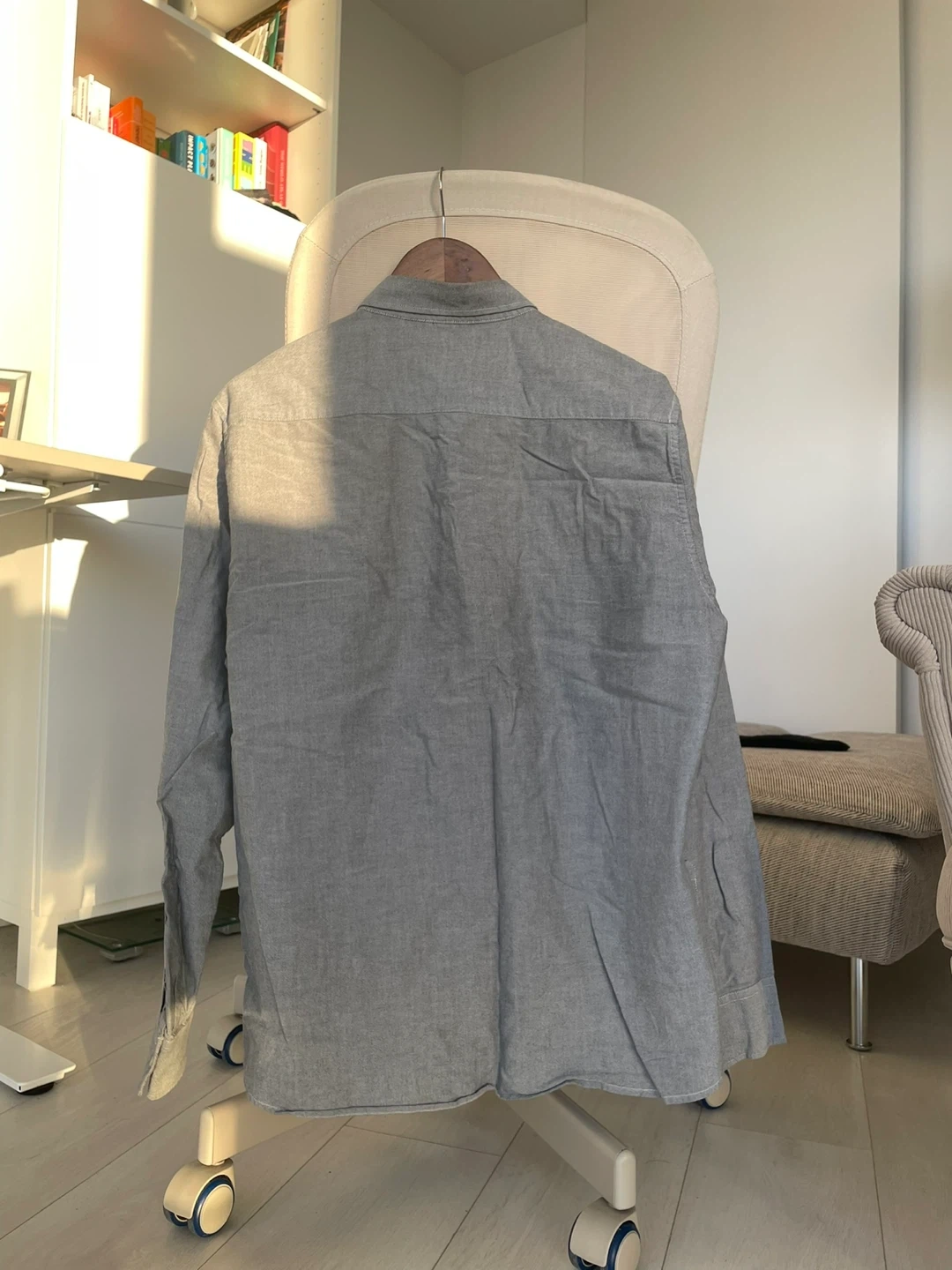 Size estimate 40-41 Worn once Selling a long sleeve button down shirt in a neutral grey colour. It's in great shape and ready for a new home! Perfect for layering or wearing on its own