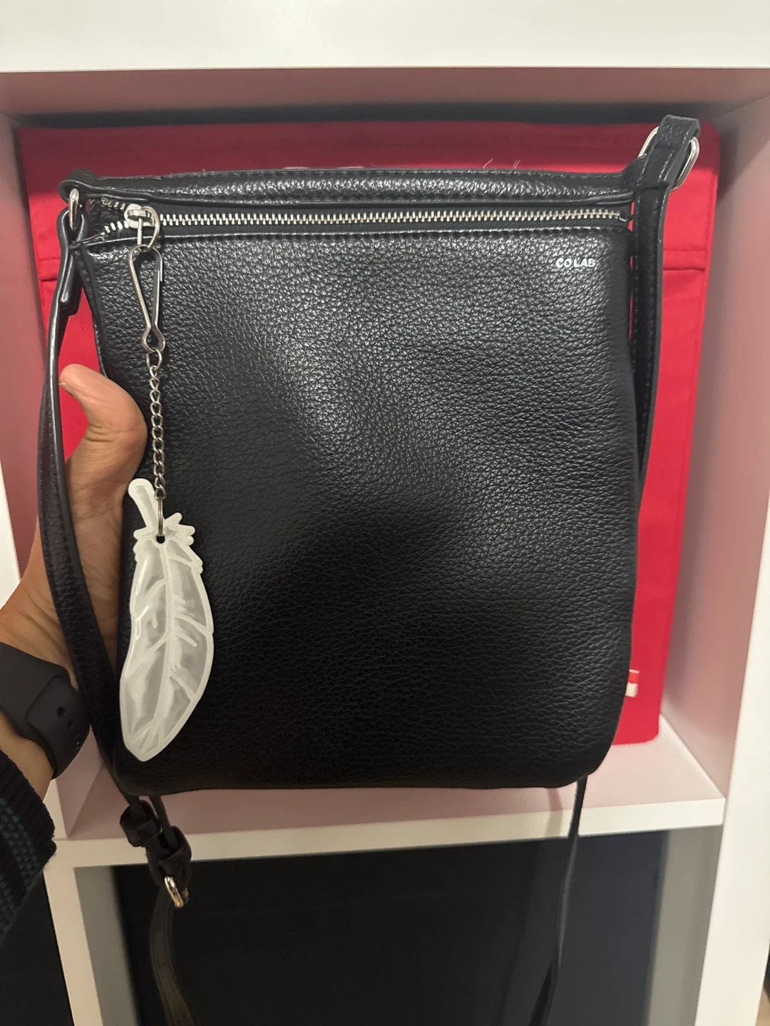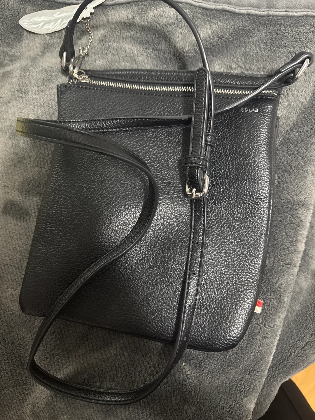 Selling a Colab crossbody bag in black. It's in great condition and perfect for everyday use! The bag features a zipper closure and an adjustable strap.