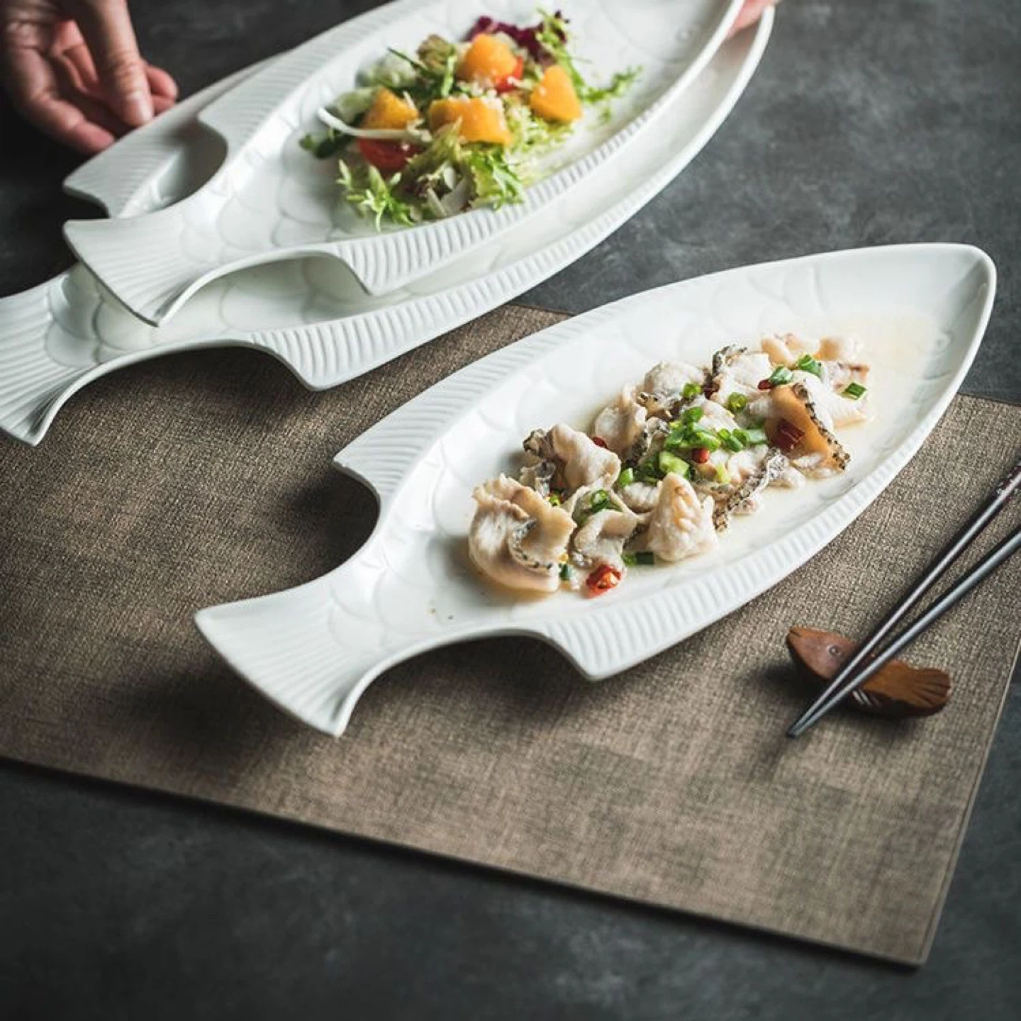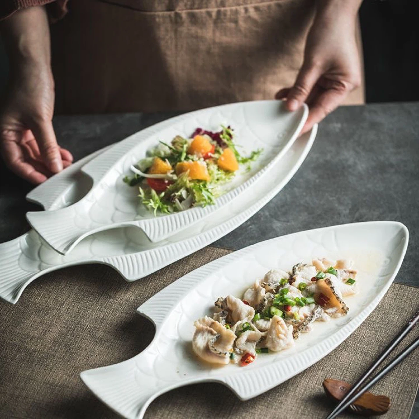 Add a unique touch to your dining experience with this charming fish-shaped serving plate! Made of ceramic, it's perfect for serving appetizers, salads, or any dish you want to present with a bit of flair. The white colour makes it a versatile addition to any table setting!