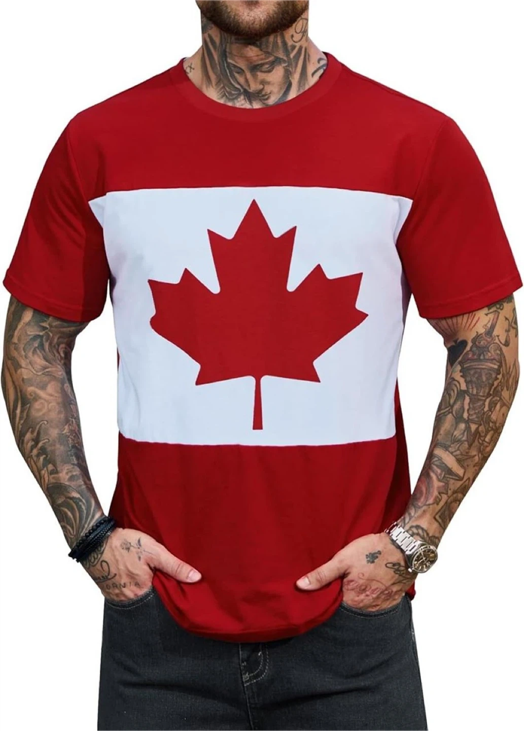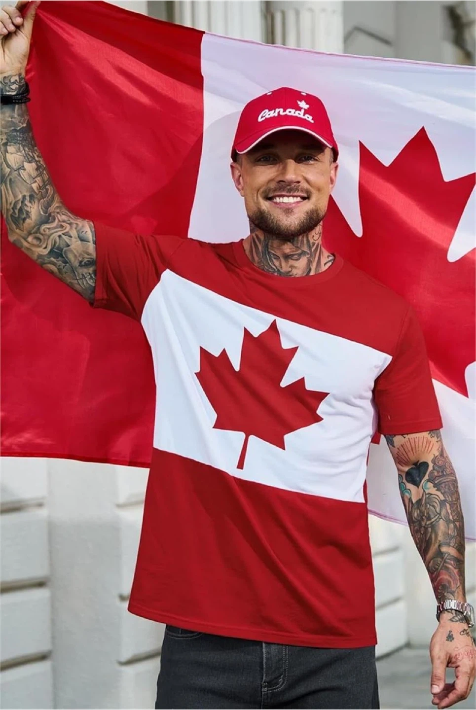 Arvilhill Men's Canada Day T-Shirt Patchwork Maple Leaf Canadian Flag Patriotic Tee Worn for a few hours for an event Size XXL No rips, stains or tears - in brand new condition