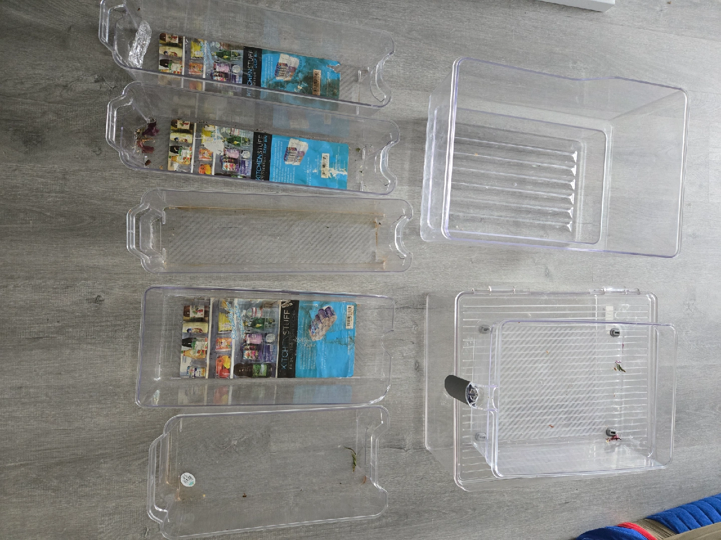 Selling some clear fridge organizers from Kitchen Stuff Plus. They're great for keeping your fridge neat and tidy! They're in good condition and ready for a new home.