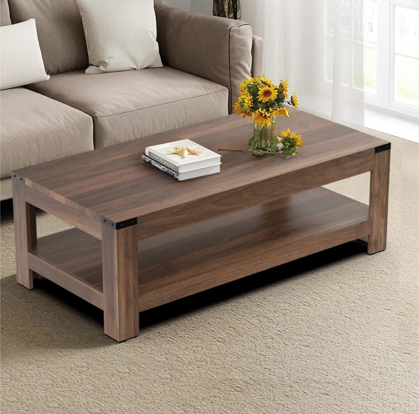 Brown Wood Coffee Table with Shelf
