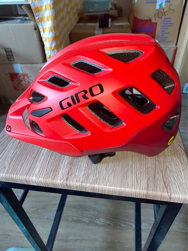 Unused bike helmet with stickers still on and with the owner’s manual. Moved to Calgary so left the bike behind! So it’s been well packed for almost 3 years now!