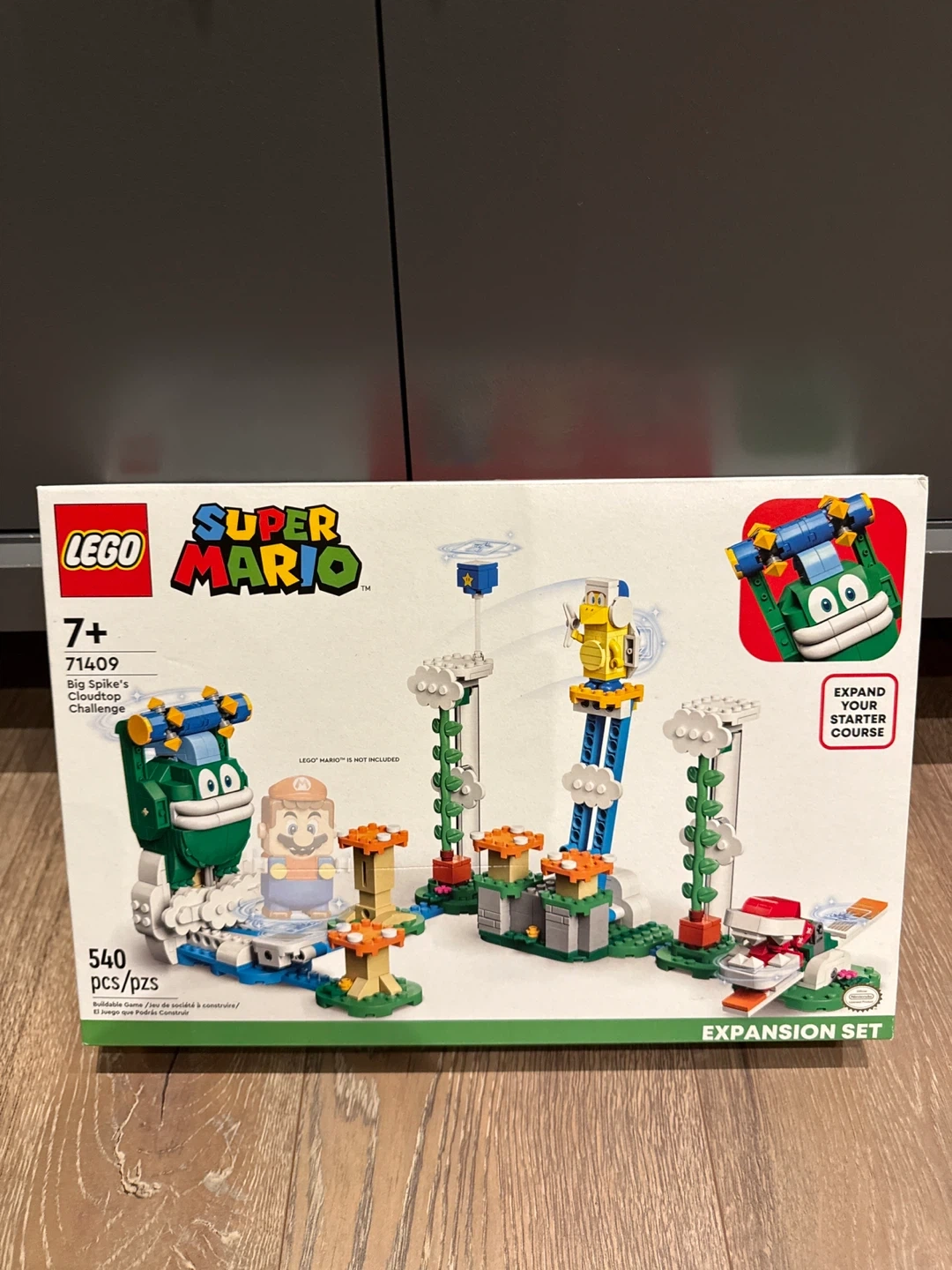Selling a LEGO Super Mario Fuzzy Spike's Cloudtop Challenge Expansion Set (71409)! This set is suitable for ages 7+. It includes 540 pieces to expand your starter course. Get ready for some fun challenges with Fuzzy and Spike!