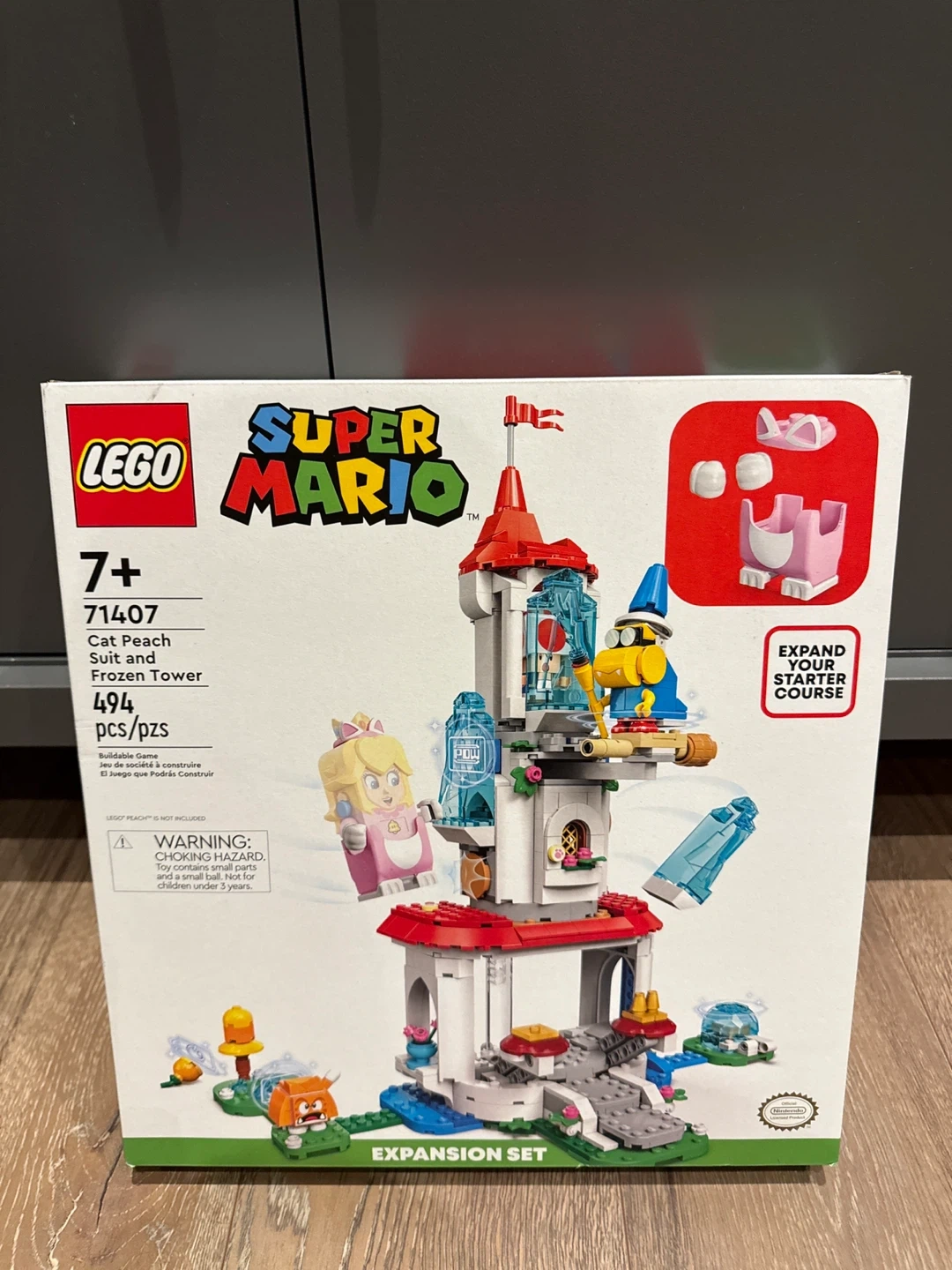 Selling a LEGO Super Mario Cat Peach Suit and Frozen Tower expansion set (71407)! It's suitable for ages 7+. This set includes 494 pieces to build a fun expansion to your starter course. Expand your Super Mario world with this cool set!