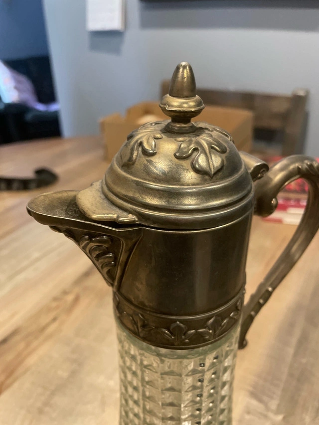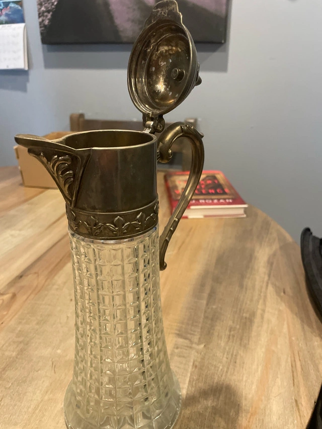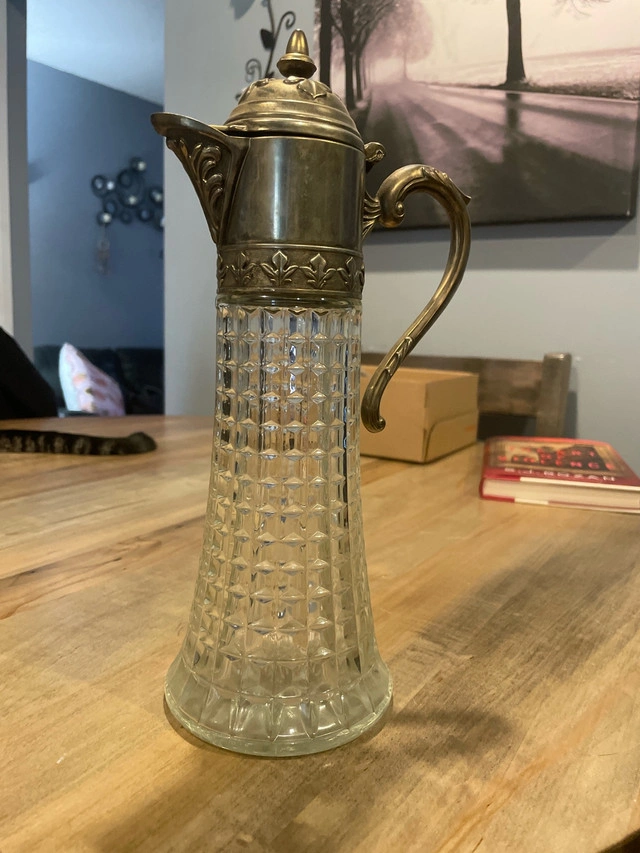 45Add a touch of vintage elegance to your dining experience with this silver-plated and glass water pitcher. This pitcher is in good condition, showcasing a beautiful combination of textures and materials that is sure to impress your guests. Additional details: - Material: Silver-plated with glass body - Style: Vintage - Condition: Good This vintage silver-plated and glass water pitcher is priced to sell at $45. Comparable pitchers are listed on Kijiji for between $40 and $60, so this is a great deal. If the ad is still up, then yes, it's still available!