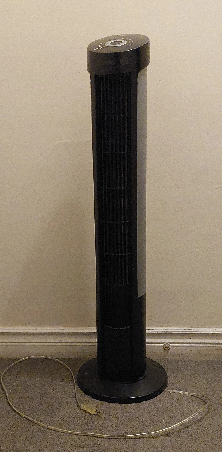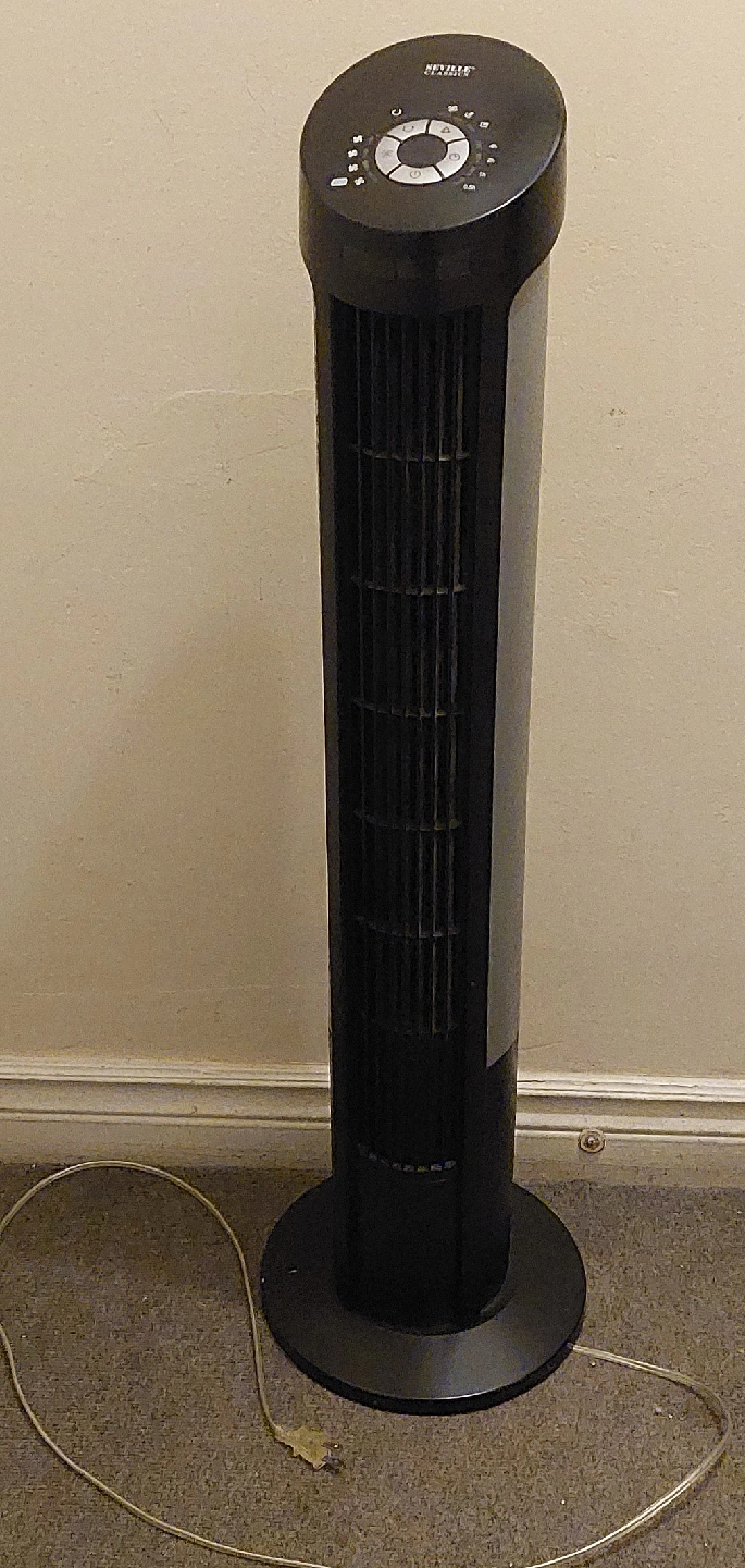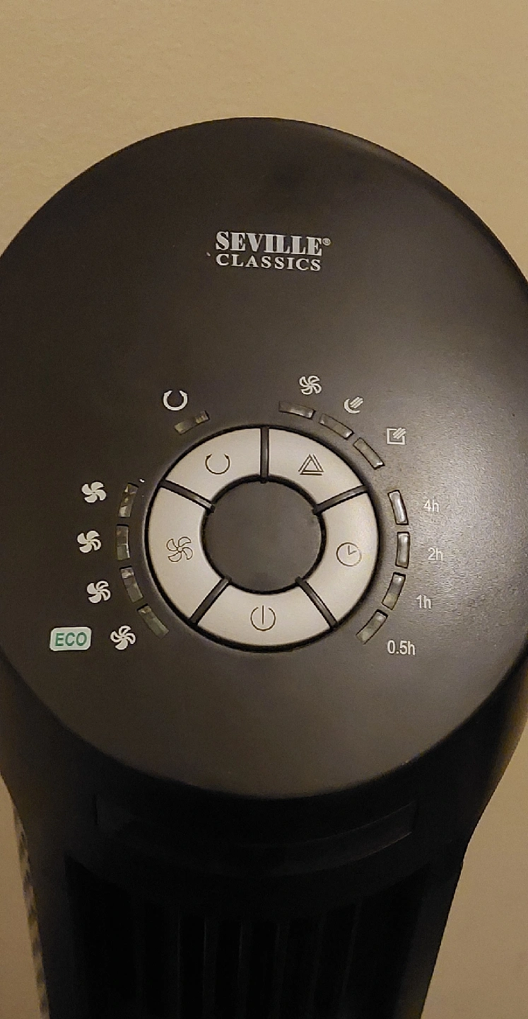 586Selling a Seville Classics tower fan in black. It's in great condition and perfect for keeping cool during the summer months. Features include multiple speed settings, a timer, and an eco mode for energy efficiency. It's a sleek and space-saving design that fits well in any room