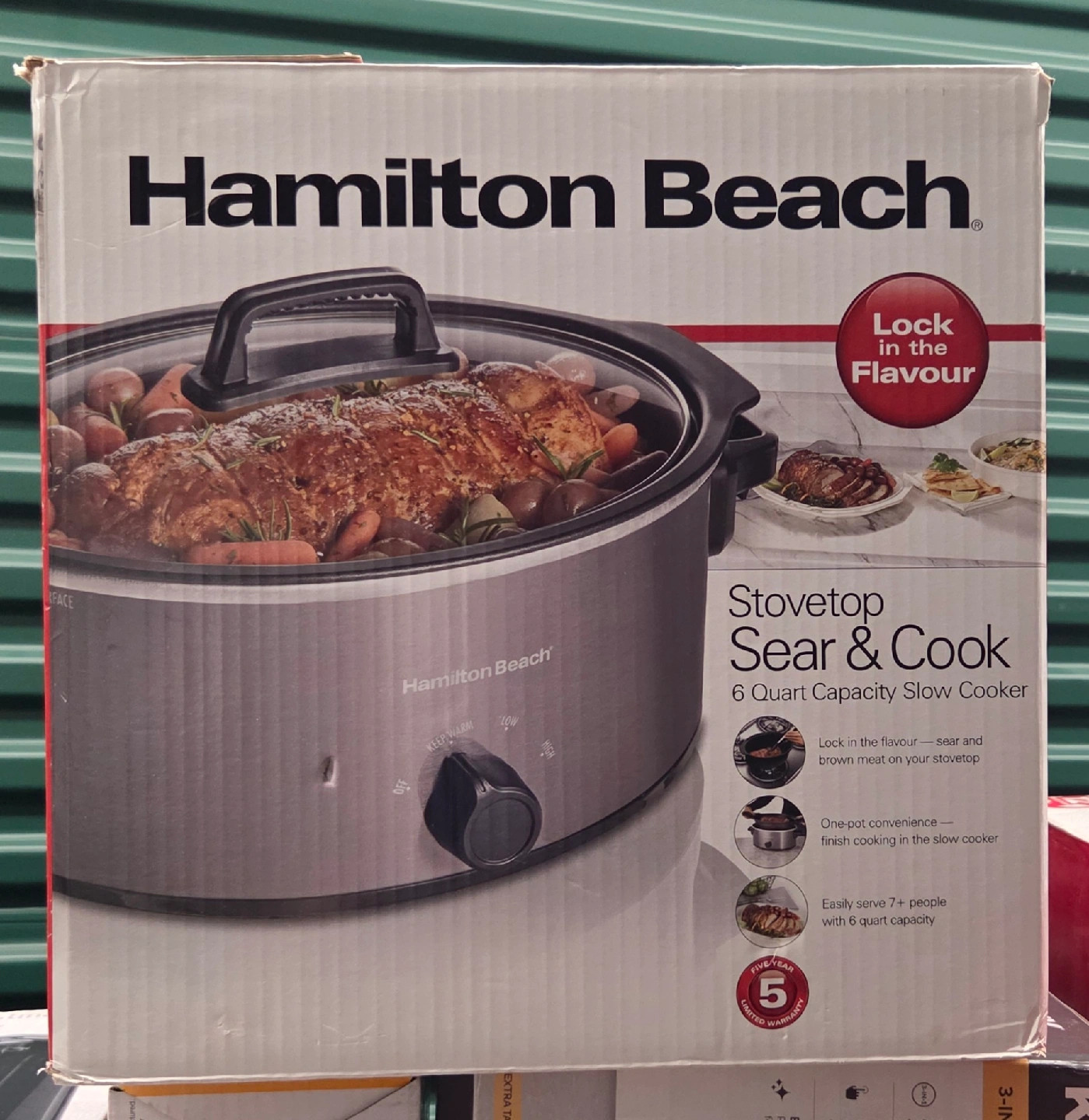 18Selling a Hamilton Beach Stovetop Sear & Cook slow cooker with a 6-quart capacity. It lets you lock in the flavour by searing and browning meat right on your stovetop. It's a one-pot convenience to finish cooking in the slow cooker, and it can easily serve 7+ people