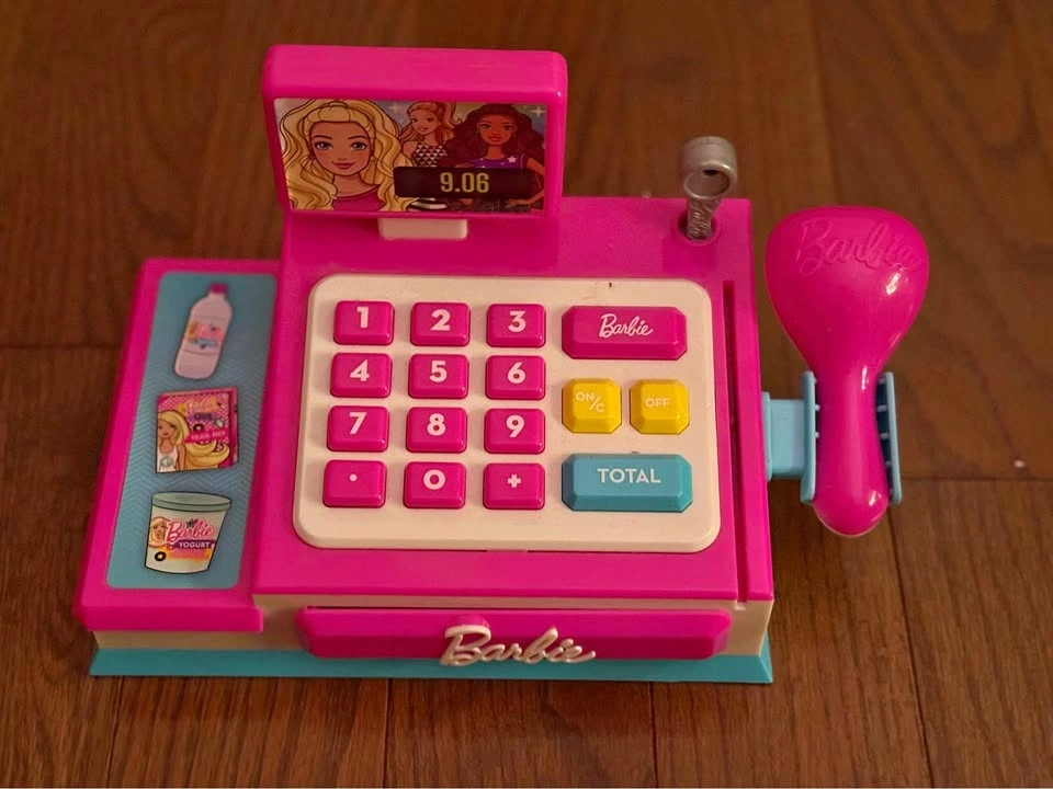 Cha-ching ring up your customers in style with the new Barbie cash register Press the buttons for fun Barbie phrases and register sounds. Drawer pops out like a real register Great role play item -includes pretend scanner, and Barbie credit card (Batteries not included) Cash only -pick up Richmond Hill
