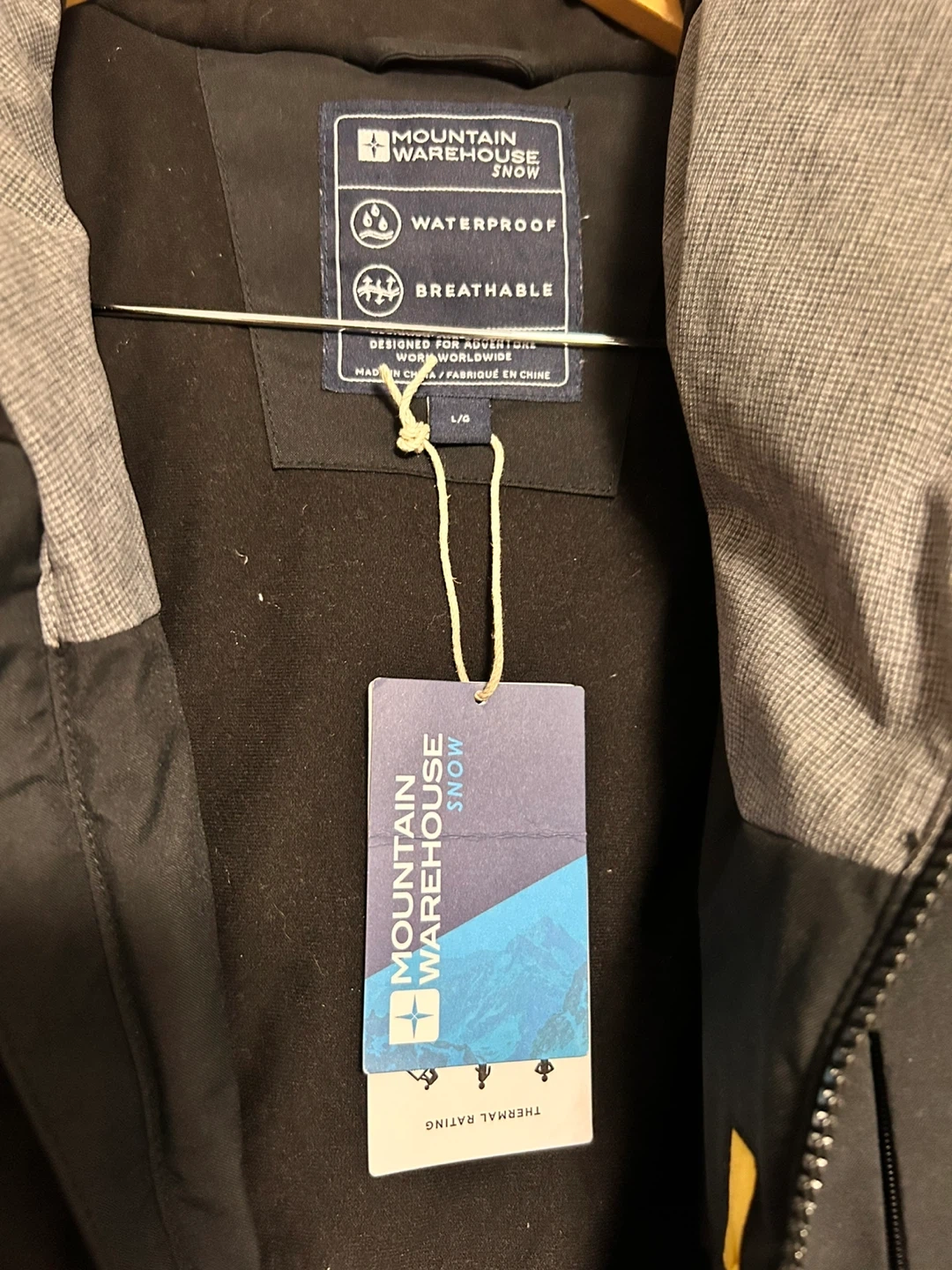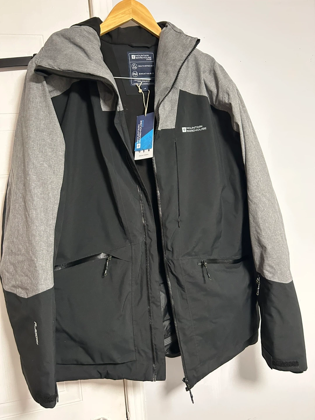 Selling a Brand New Mountain Warehouse snow jacket in size L! It's waterproof and breathable, perfect for the Canadian winter. It's black and grey, and ready for the slopes or just staying warm around town