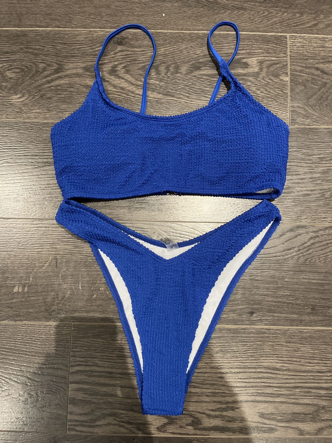cheeky, high cut bottoms and padding in the top with clasp at the back