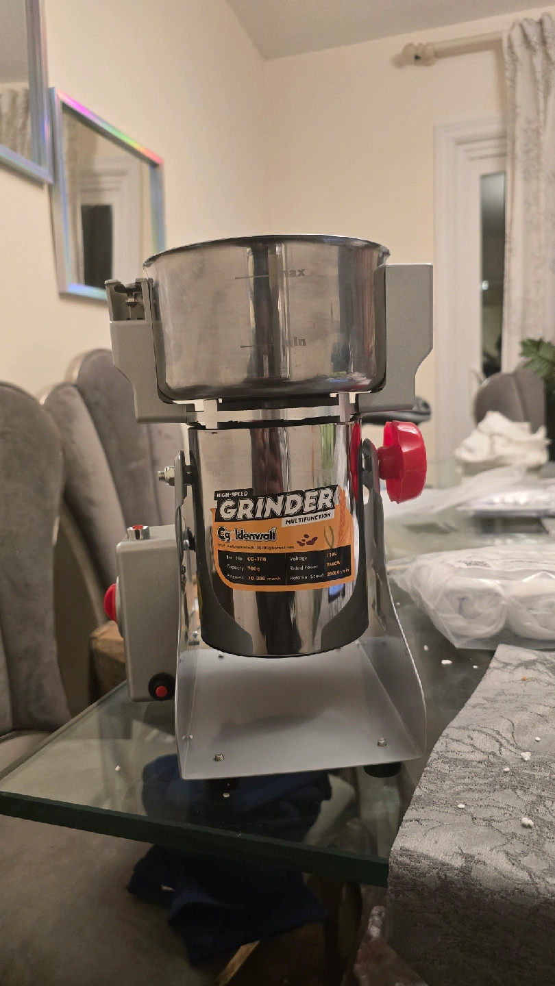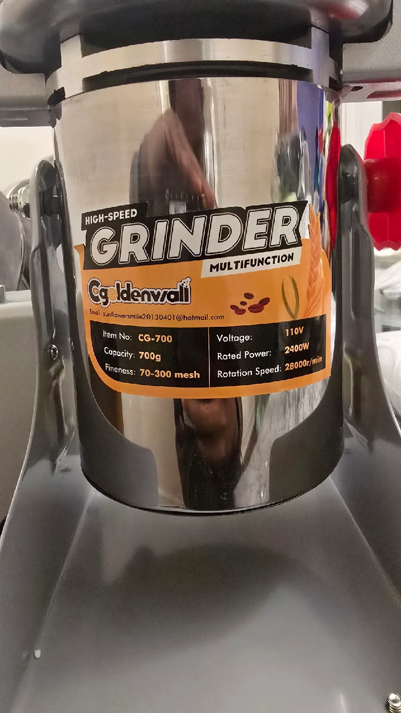 I'm selling a Goldenwall high-speed multifunction grinder. It's in great condition and ready to help with your grinding needs! Key features include: - Capacity: 700g - Fineness: 70-300 mesh - Voltage: 110V - Rated Power: 2400W - Rotation Speed: 28000r/min Item No: CG-700