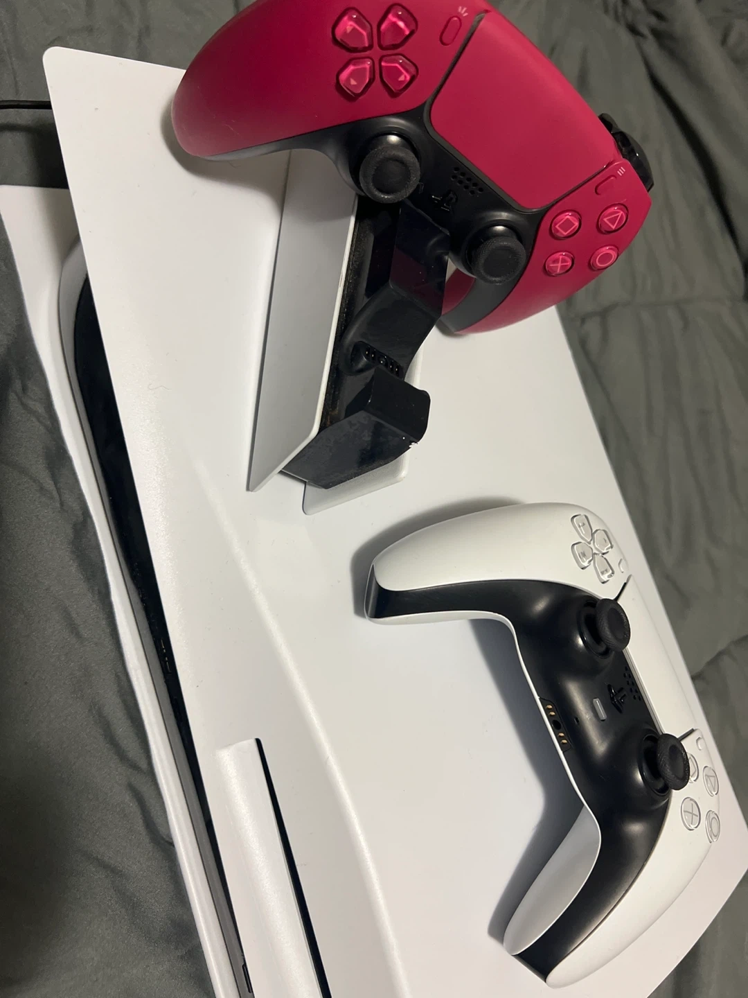 Selling a used PlayStation 5 console. It comes with two controllers, one white and one pink. Perfect for gaming! Only played god of war when it came out and stardew valley