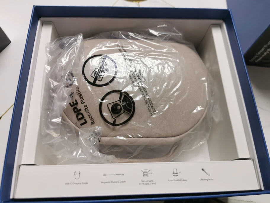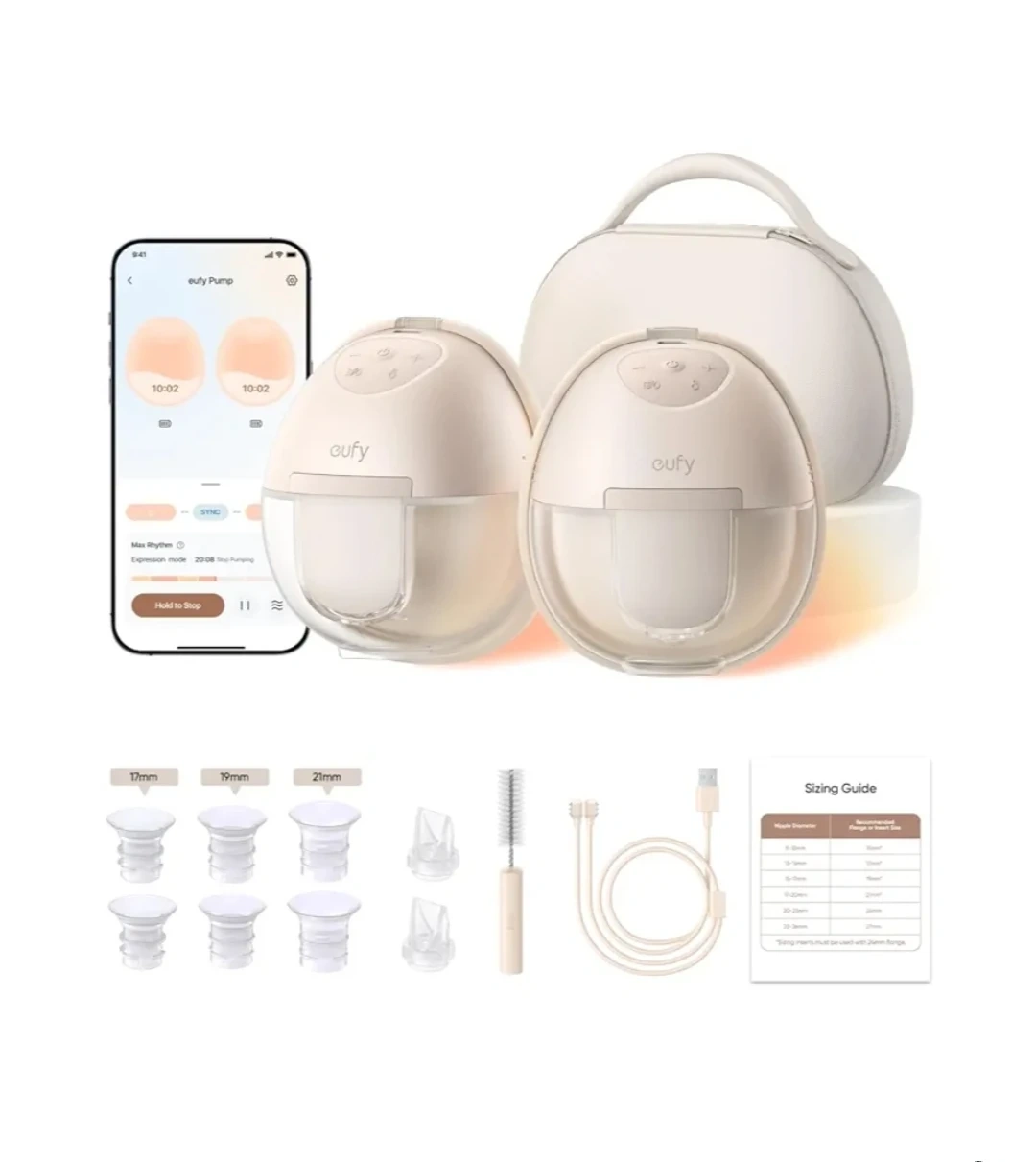 Selling a open box Eufy Wearable Breast Pump S1 Pro! It comes with the original box and all included components, such as the USB-C charging cable, magnetic charging cable, sizing inserts (17, 19, and 21 mm), extra duckbill valves, and a cleaning brush. It also includes a charging case.