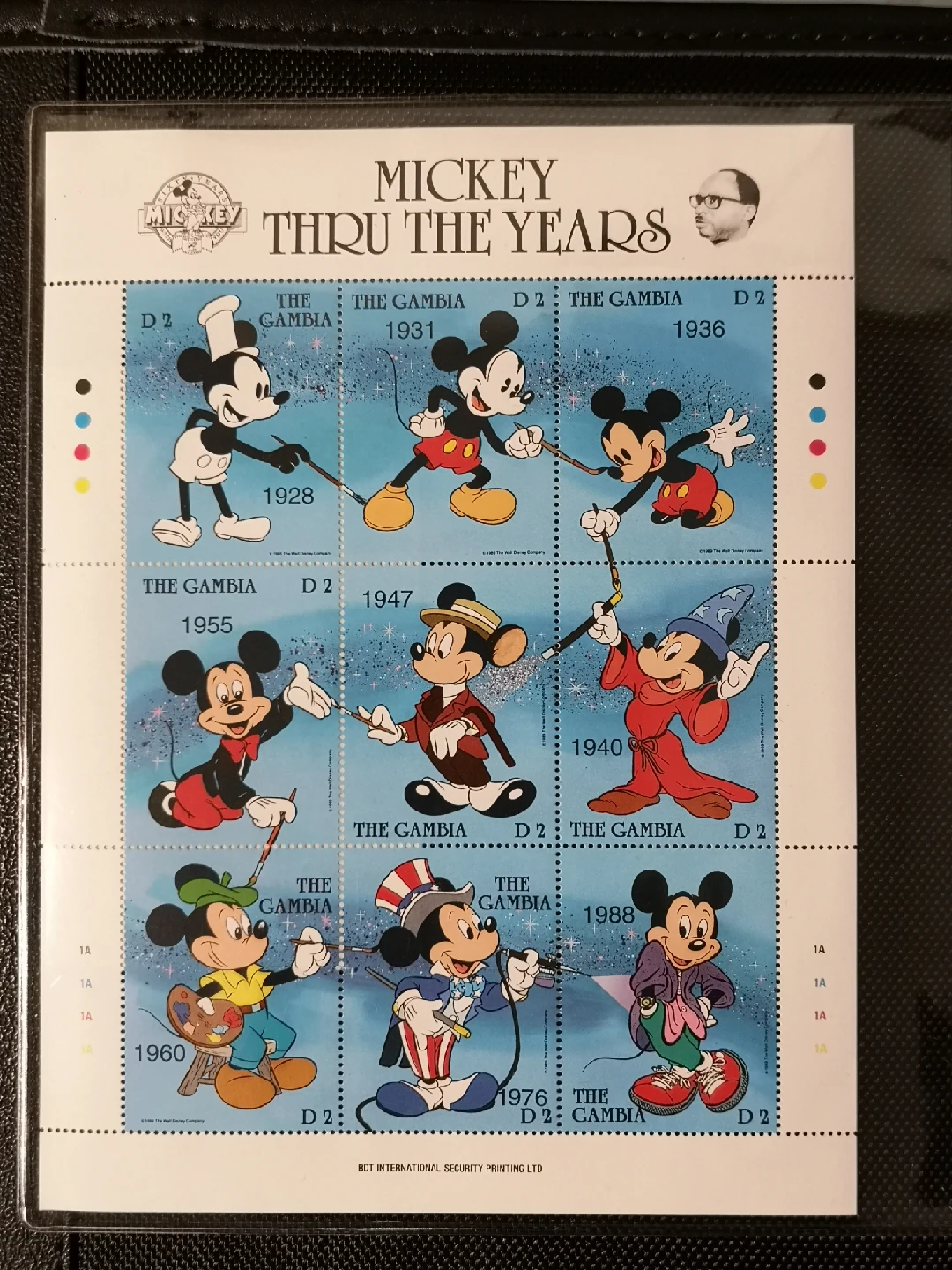9 Disney Stamps ~ Micky Mouse ~Gambia Collector's Sheet~DM1