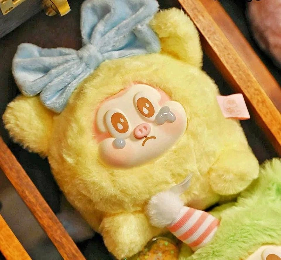 Such a cute creamy yellow piggy with cute blue bow! Great for cuddling and he is crying for your love!