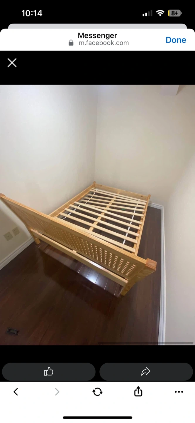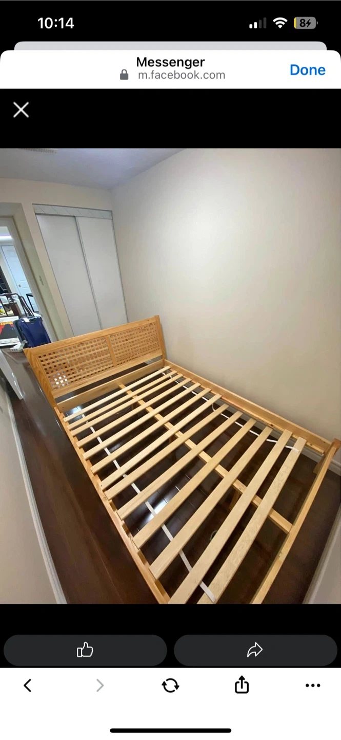 Selling a double sized wooden bed frame. It's in great condition and ready for a new home! Perfect for adding a touch of natural warmth to your bedroom. Got it off marketplace it was sold as a twin but a double is too big for my space
