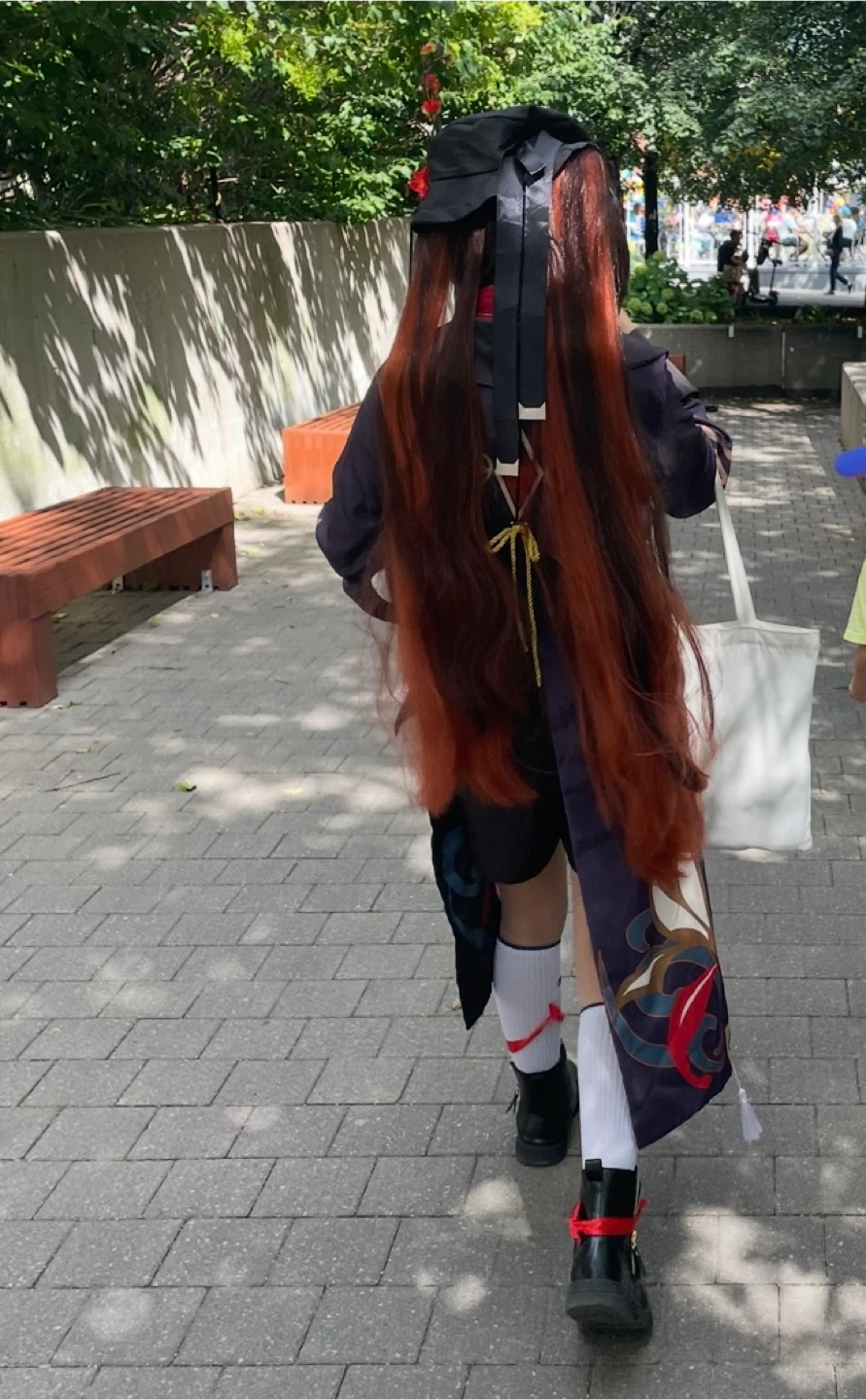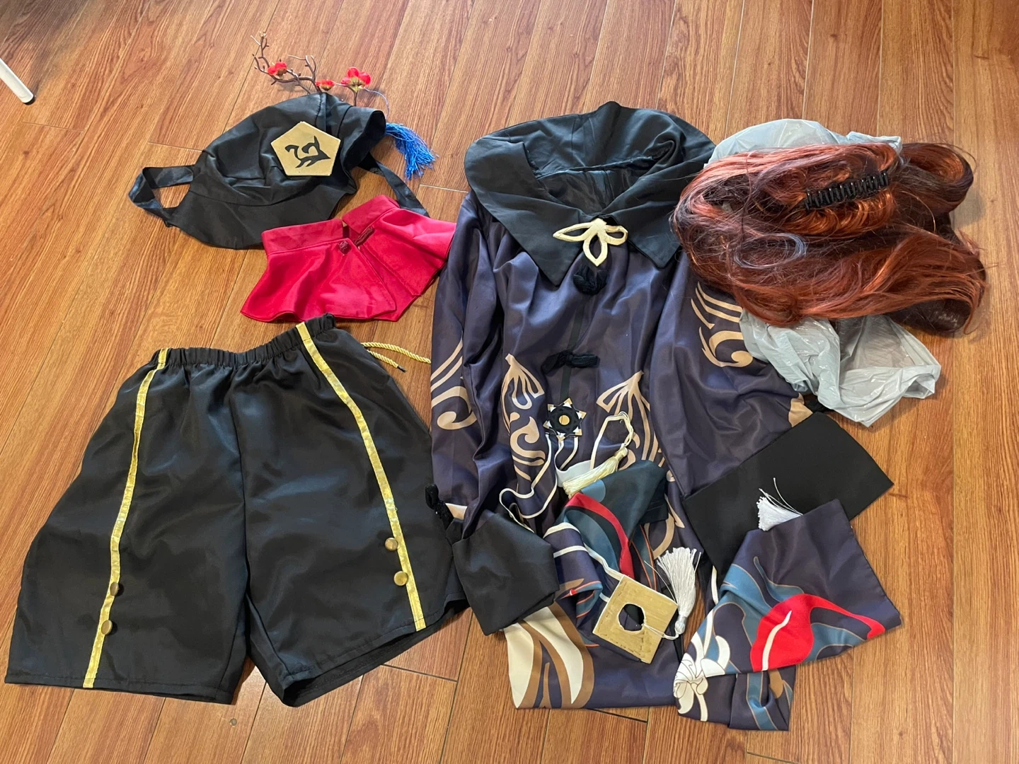 102Complete Hu Tao cosplay set from Genshin Impact! Includes full outfit, hat, wig, and accessories.