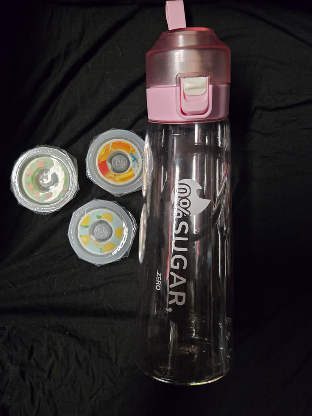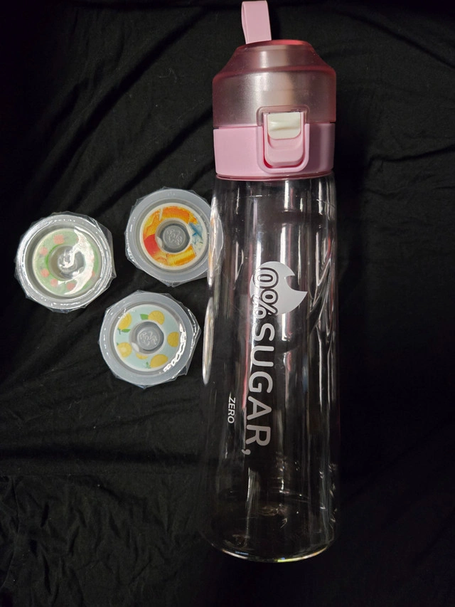 This stylish and practical fruit infuser water bottle is perfect for staying hydrated with a healthy twist. The 650ml capacity is ideal for daily use, and the pink flip-top lid with a carrying strap makes it convenient on the go. Includes three colorful fruit-themed filter caps for easy flavor infusion—just add your favorite fruit scents! Key Features: 650ml clear bottle with "0% SUGAR, ZERO" design Pink flip cap with secure latch and carry strap Includes 3 swappable infuser caps (lemon, watermelon, and mixed fruit design) BPA-free and easy to clean Ideal for workouts, commuting, or home use