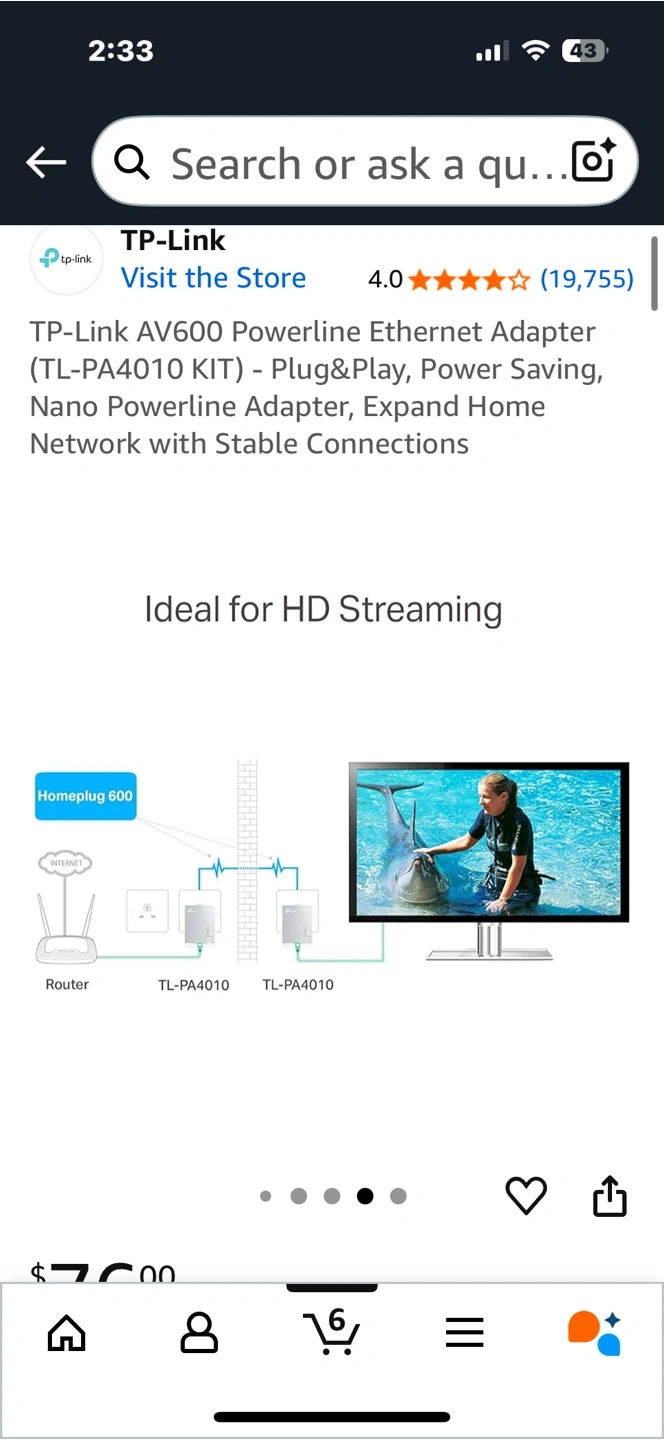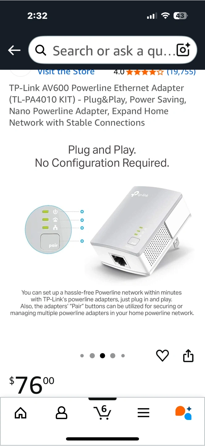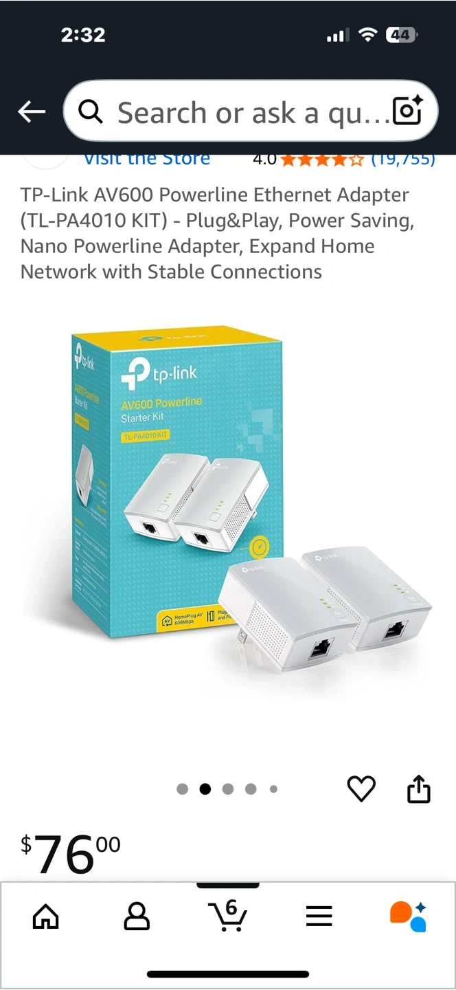Selling a TP-Link AV600 Powerline Ethernet Adapter (TL-PA4010 KIT). It's plug & play and power saving. It expands your home network with stable connections. Ideal for HD streaming New open box