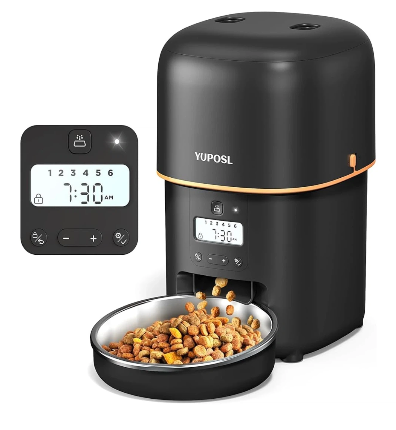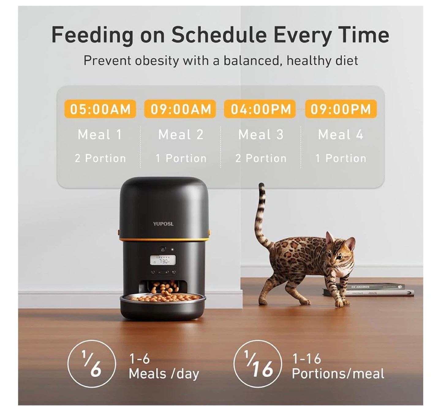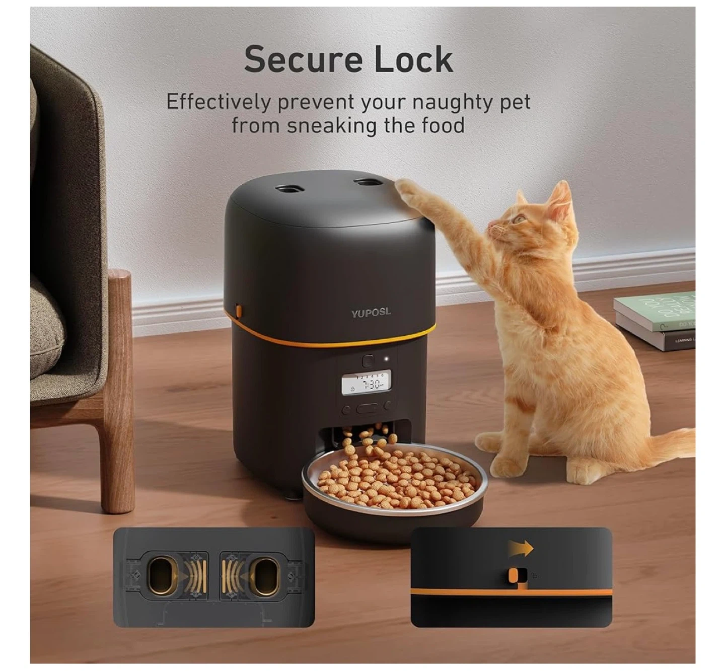 Keep your pet fed on schedule with the automatic pet feeder! This feeder helps prevent obesity with a balanced, healthy diet. It can be set to feed your pet 1-6 meals per day, with 1-16 portions per meal. It also keeps kibble fresh and crunchy, and prevents ants from getting in. The secure lock effectively prevents your naughty pet from sneaking food