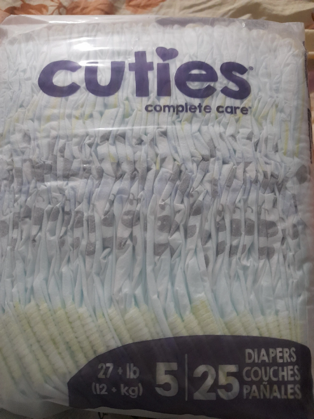 Selling a pack of Cuties Complete Care diapers, size 5. This pack contains 25 diapers and is designed for babies 27+ lb (12+ kg). Great for keeping your little one dry and comfortable!