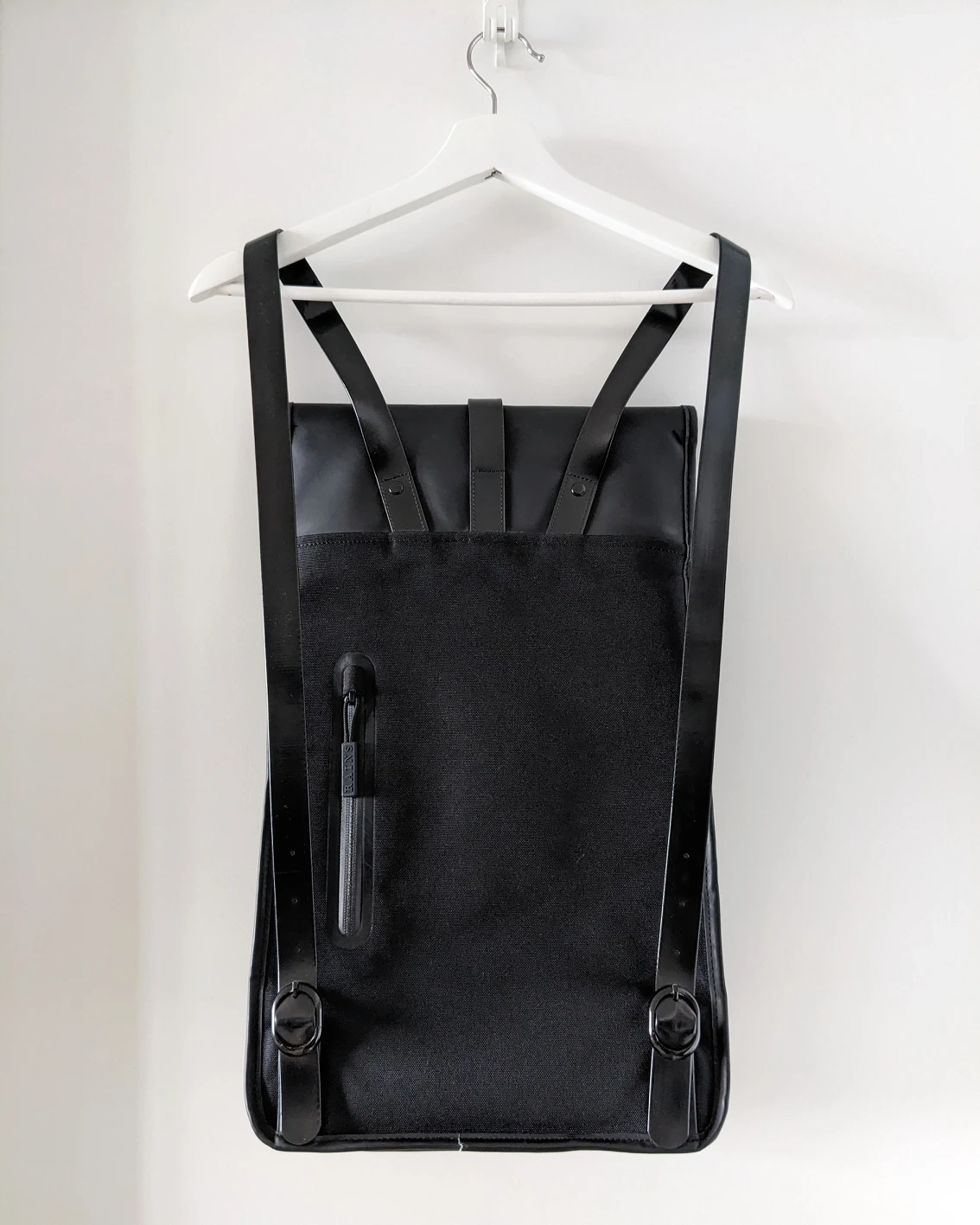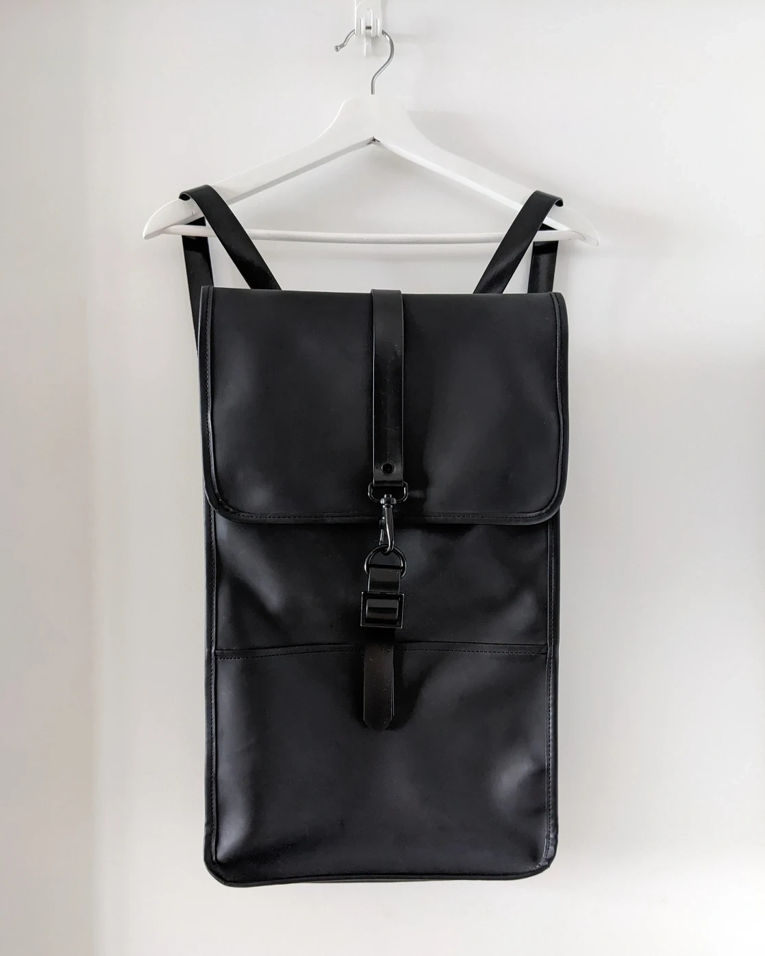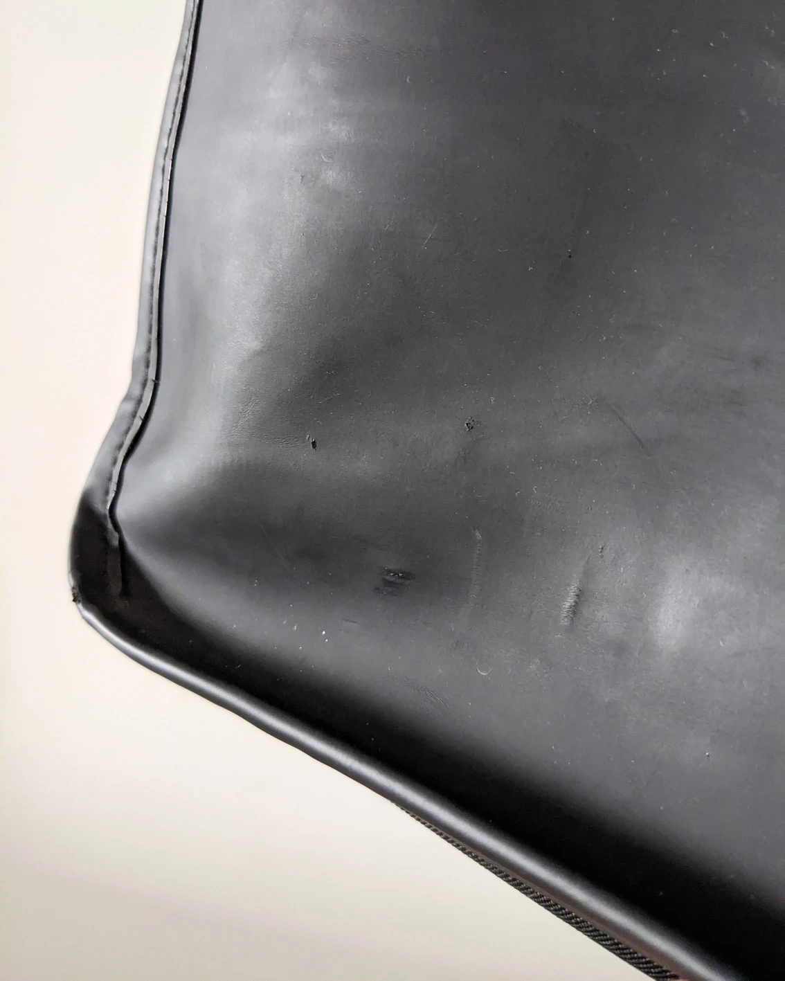 This used to be my everyday backpack for work, so there's a little bit of wear and tear, but it's still in very usable shape! It's also made of waterproof PU fabric!