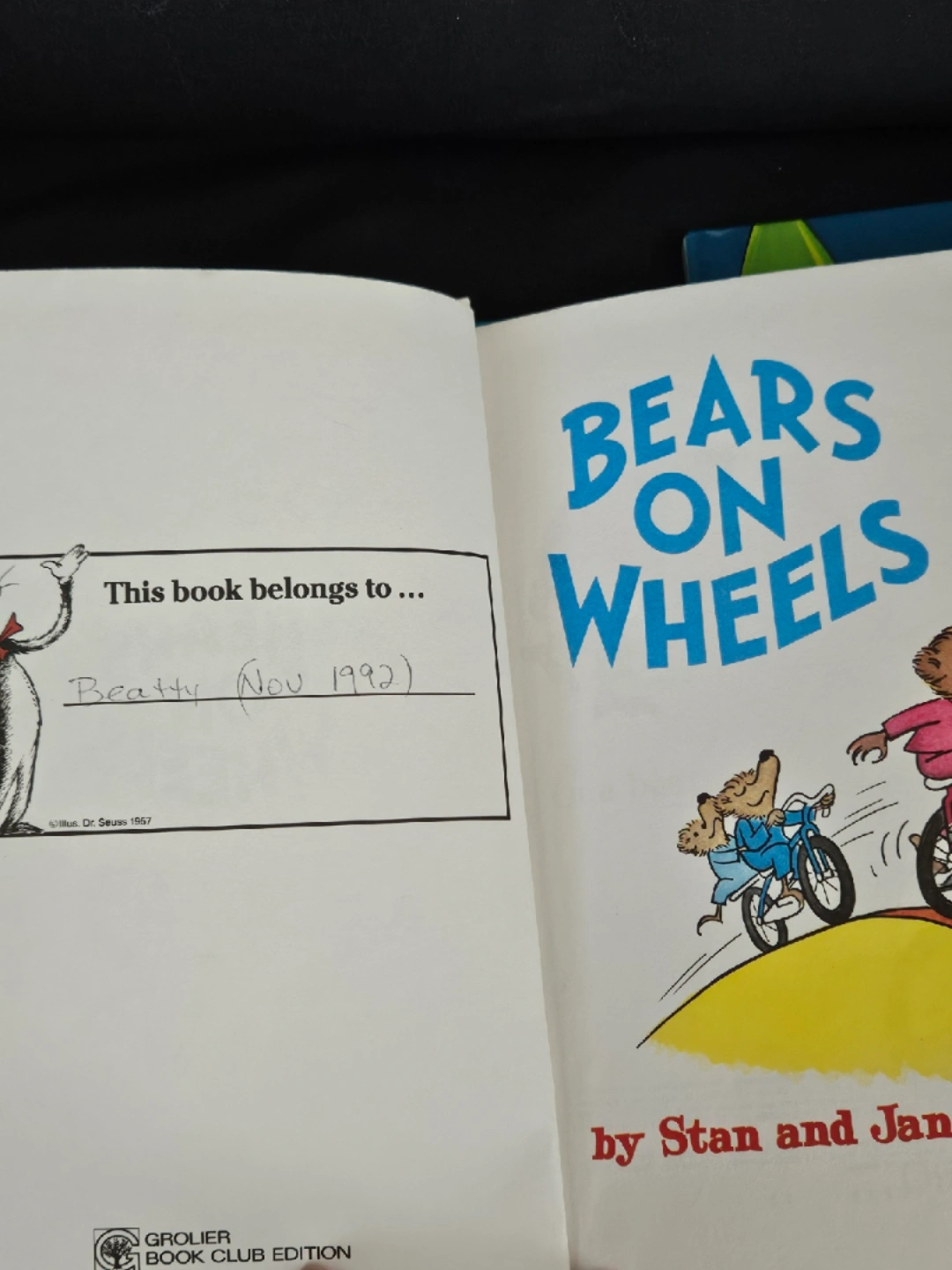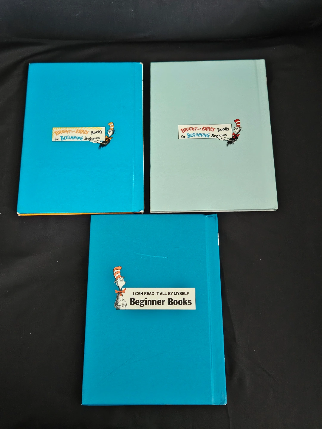 $3 for all 3. In good condition (Purchased preowned). Covers either have a scratch, name written on inside or a rip inside cover. See additional pictures for flaws. Includes: - The Cat in the Hat by Dr. Seuss - Bears on Wheels by Stan and Jan Berenstain - The Berenstain Bears on the Moon by Stan and Jan Berenstain