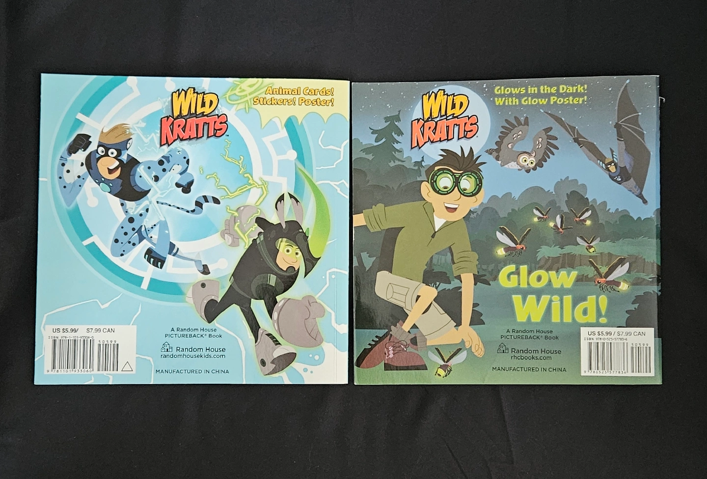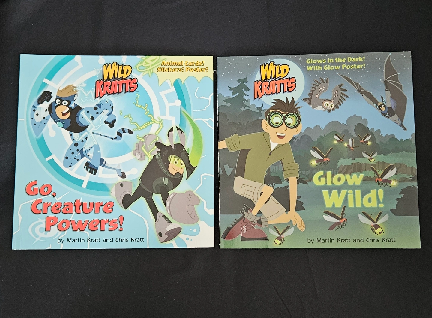 Price includes 2 Wild Kratts books: "Go, Creature Powers" and "Glow Wild" by Martin Kratt and Chris Kratt. The book are in excellent condition but the animal cards and posters are gone. Most of the stickers are still there in one book (see picture). Milton pick up, cash only, no holds.