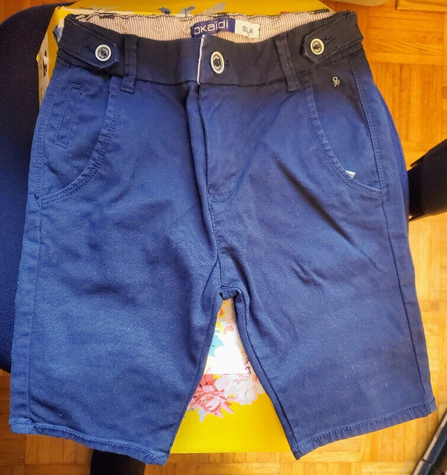 In perfect, like new condition. Size 7 SLIM Okaidi navy blue dress shorts. 98% cotton, 2% elastine. From a smoke and pet free home.