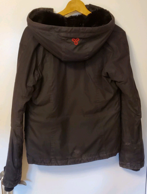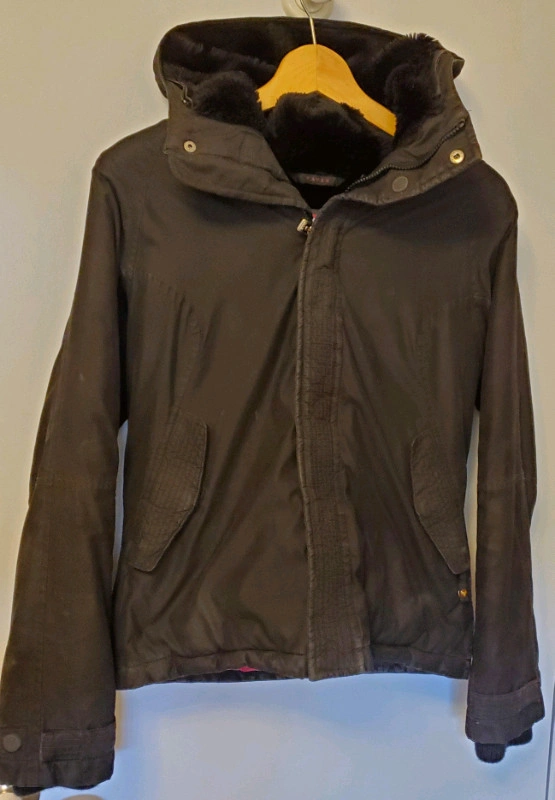 Black. Engineered to deliver warmth to -20°C / -4°F This parka contains 100% responsibly sourced goose down. This is our short version of the Summit — a hooded, hip-length parka with a slim fit and a hidden zipper for a clean look. The faux-fur trim hood and merino wool cuffs add extra coziness. It's made with waterproof, windproof fabric engineered to keep you dry and insulated. Waterproof Fabric Windproof Fabric 700+ Goose Down Fill Warmer: -20°C / -4°F Responsible Down 100% responsibly sourced goose down — certified to the Responsible Down Standard Engineered to deliver warmth to -20°C / -4°F 700+ fill power goose down Waterproof fabric Windproof fabric Rare-earth magnetic closures Removable Real Faux Fur trim NOT INCLUDED Cozy brushed pockets Dual zipper Interior smart phone storage pocket We developed our warmth ratings to help you choose the right parka for your climate, activities and needs. Because everyone feels temperature differently, they are intended as guidelines only. Materials & Care Content: 57% biconstituent fiber nylon polyester, 43% polyester; 100% polyester; Sleeve lining: 100% polyester; Lower body lining: 100% polyester; Fill: 80% goose down, 20% goose feathers; Cuffs: 80% merino wool, 20% nylon; Detachable fauxfur trim: NOT INCLUDED, 46% modacrylic, 37% acrylic, 17% polyester Care: Machine wash Fit: Slim — streamlined to fit close to the body A size M will fit someone who typically wears a 8 in Aritzia clothing. Depending on body shape and fit preference, a M may also fit someone who wears a 6 or 10.