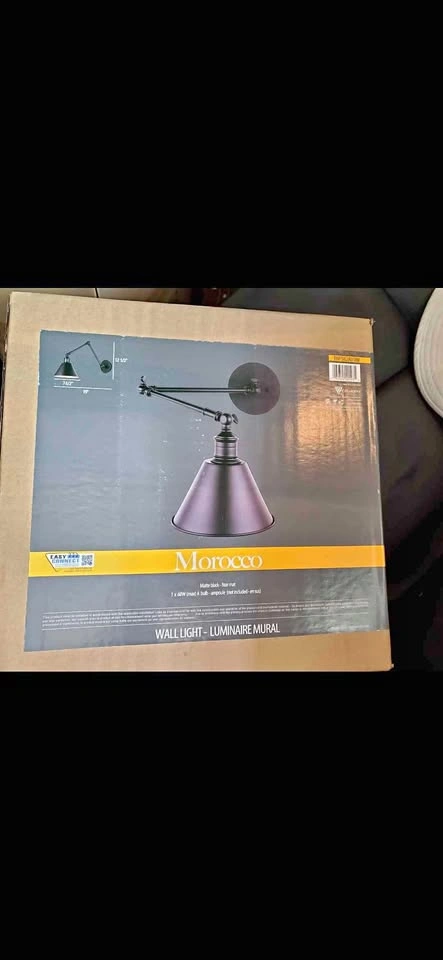 This is a stylish Morocco wall light fixture in a matte black finish, designed to add a touch of industrial charm to any room. It accommodates a 40W bulb (bulb included) and features an adjustable arm for directing light exactly where you need it. * Style: Industrial * Finish: Matte Black * Bulb: 1 x 40W (bulb included) * Adjustable Arm