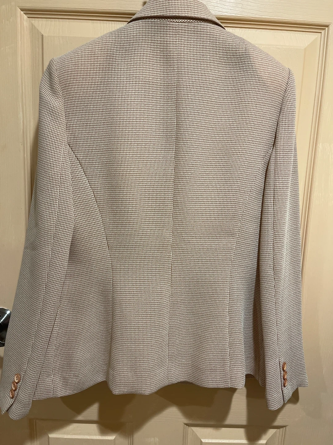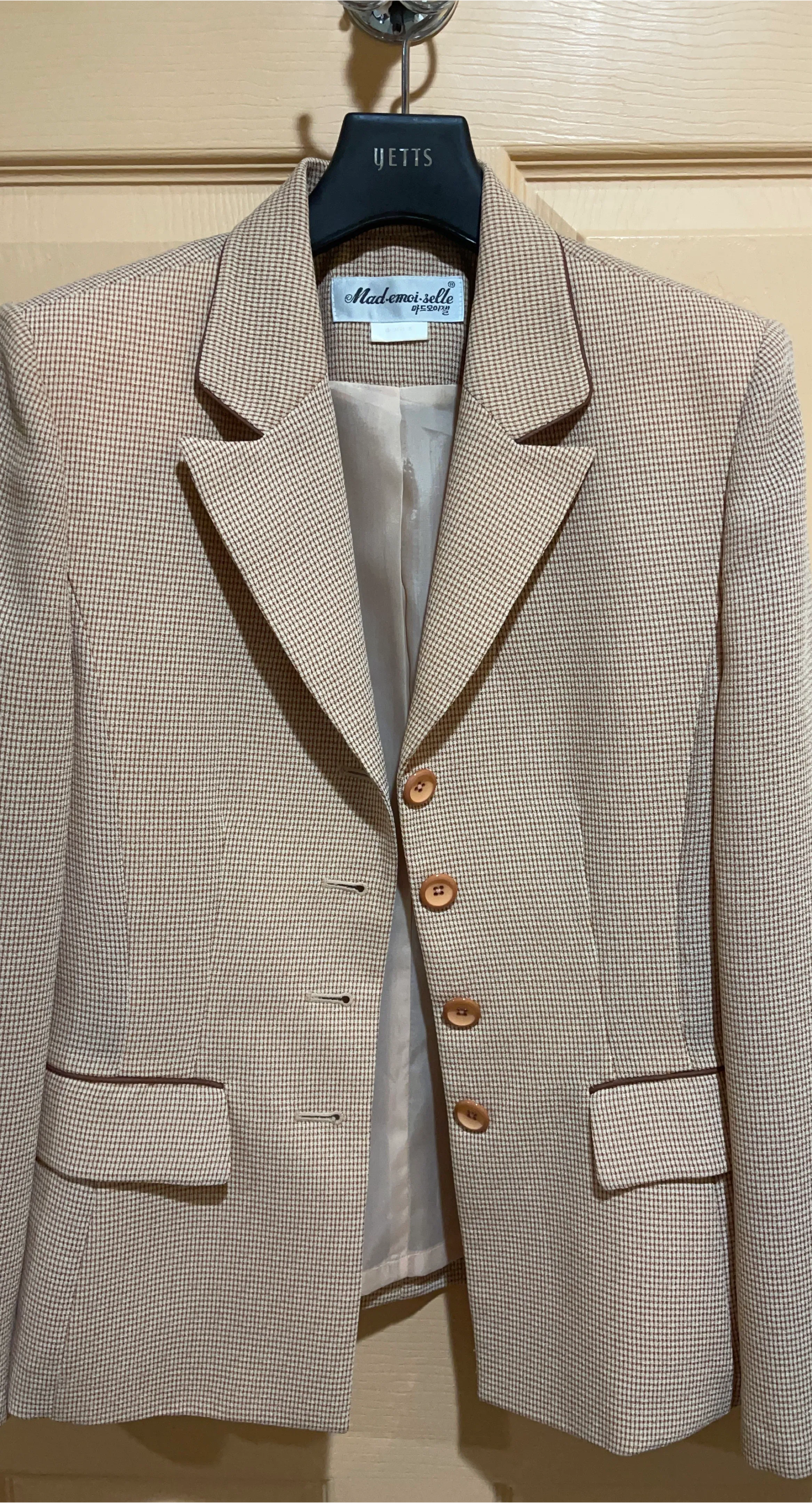 Selling a stylish Mademoiselle houndstooth blazer. It's in great condition and features a classic design with brown buttons and trim. Perfect for adding a touch of sophistication to any outfit!