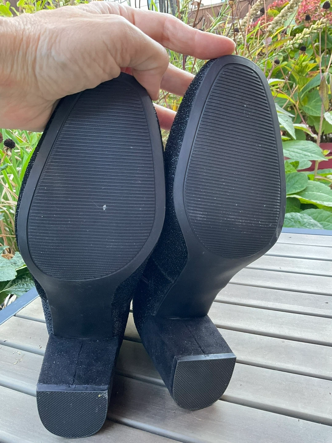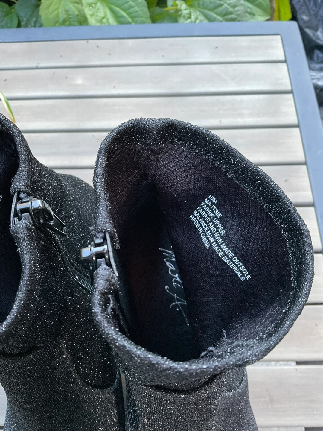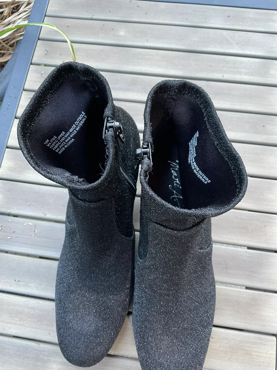 Selling a pair of Mari black sparkle ankle boots in size 10M. They feature a fabric and man-made outsole with balance man-made materials. These stylish boots are perfect for any occasion!
