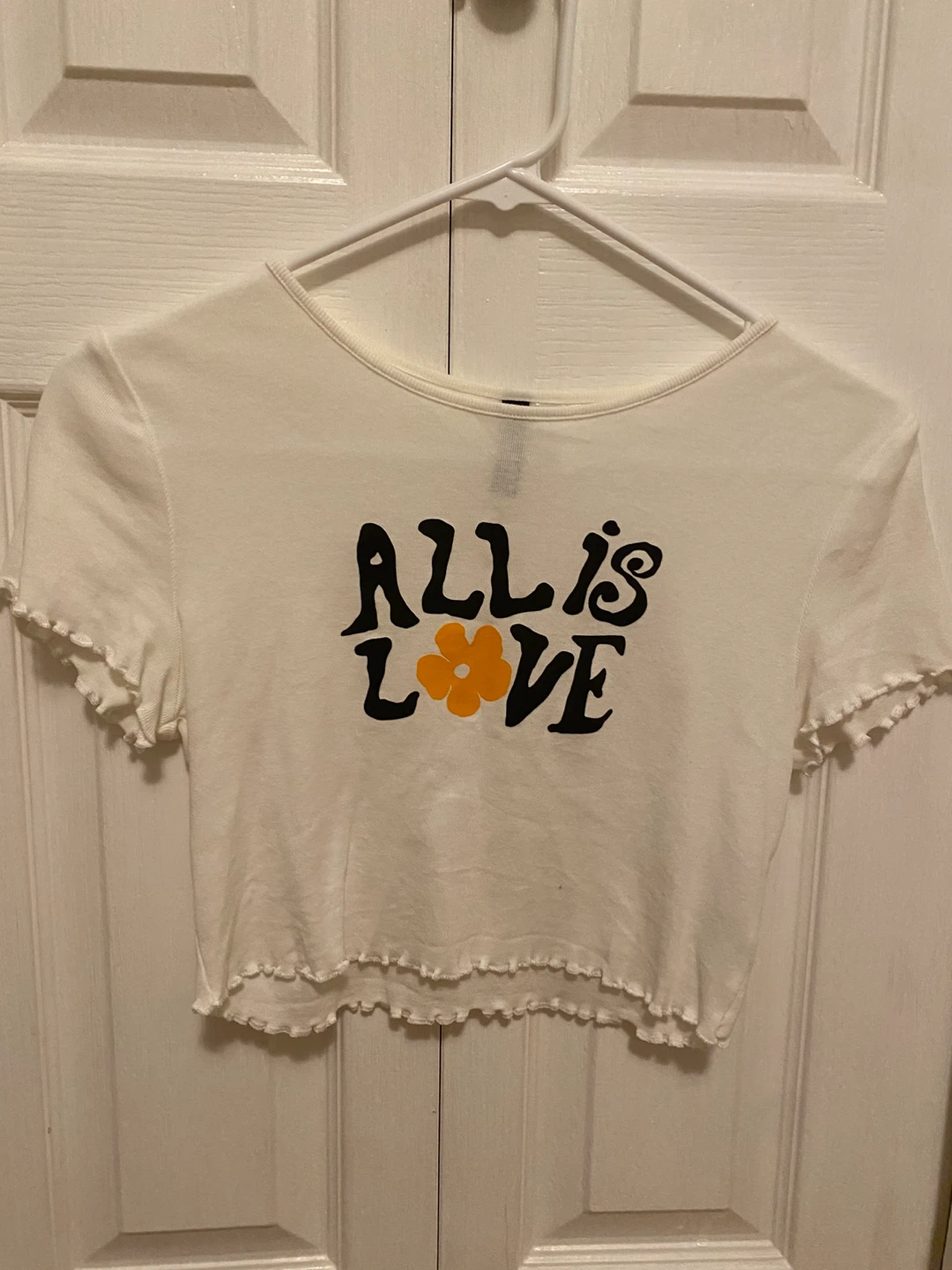 1 / 21 / 2Buy & SellH&M Divided White Graphic Tee - Size SH&M Divided White Graphic Tee - Size S$7Cute H&M Divided white t-shirt with an "All is Love" graphic! It's a size small and in great conditionConditionGoodSizeSBrandH&MWHERE TO MEETThompson Community centreView MapSELLERverifiedCharleneThompson1409 reviews0 chats·0 favorites·11 viewsSEND CHAT TO SELLERHi Charlene! I’m interested in your listing.Hi Charlene! I’m interested in your listing.Get the Karrot app to chatSign In to chat