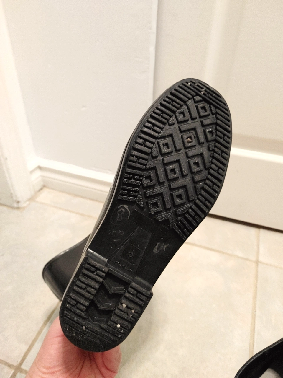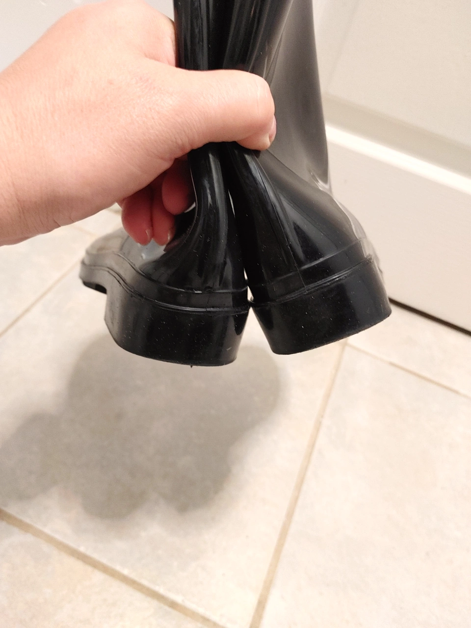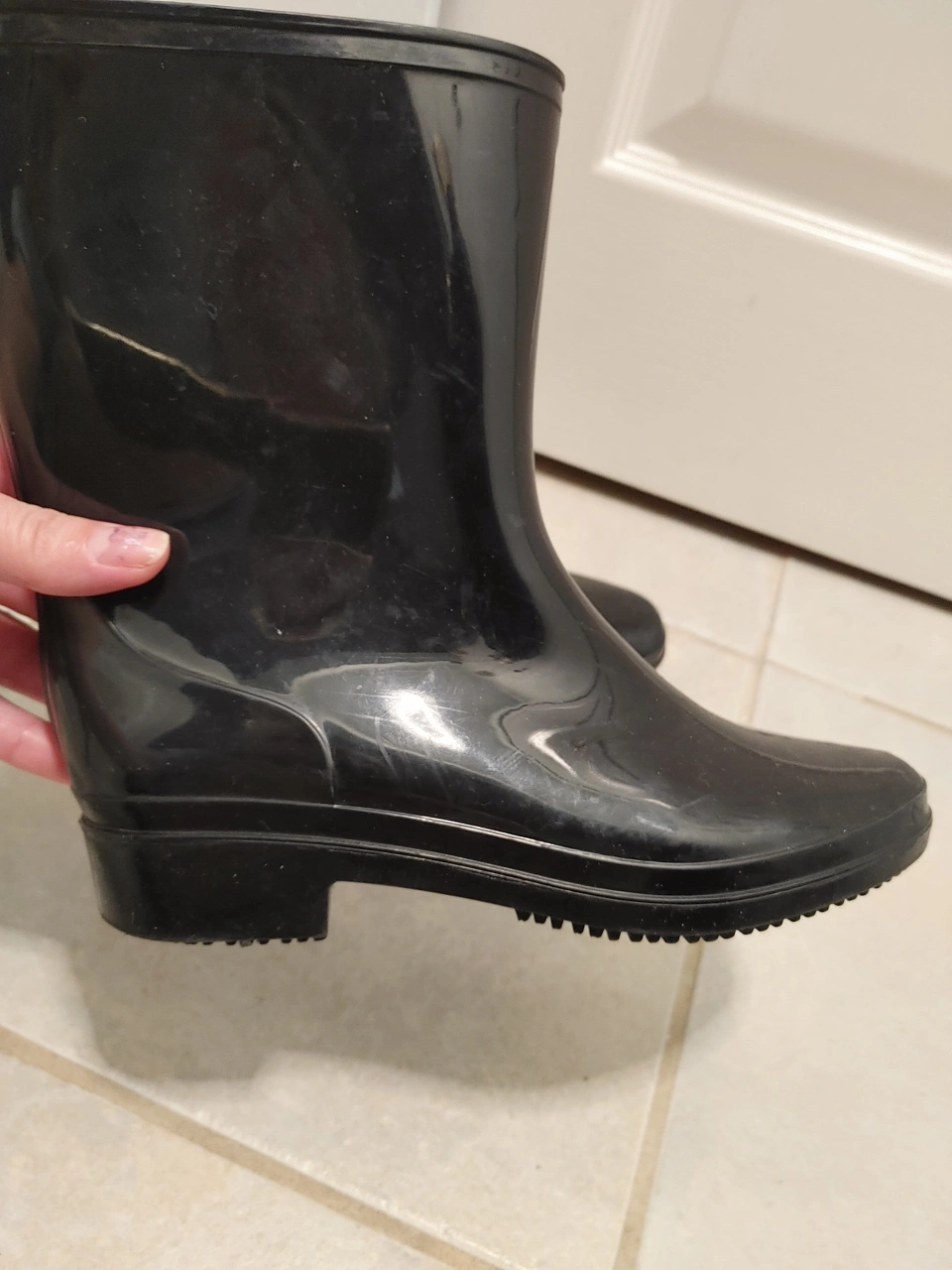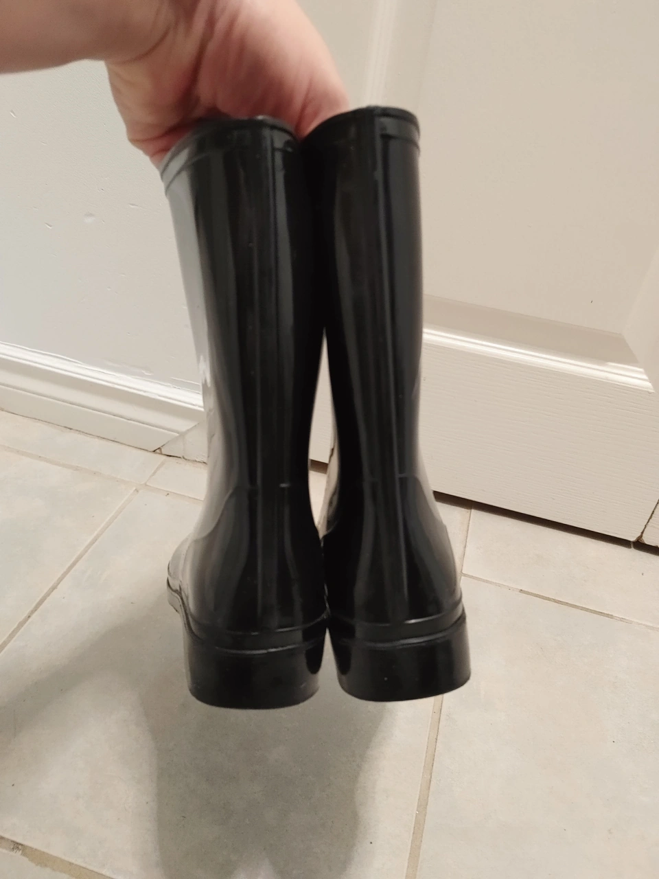Selling a pair of black rain boots. They're in good condition and ready to keep your feet dry on those rainy days!