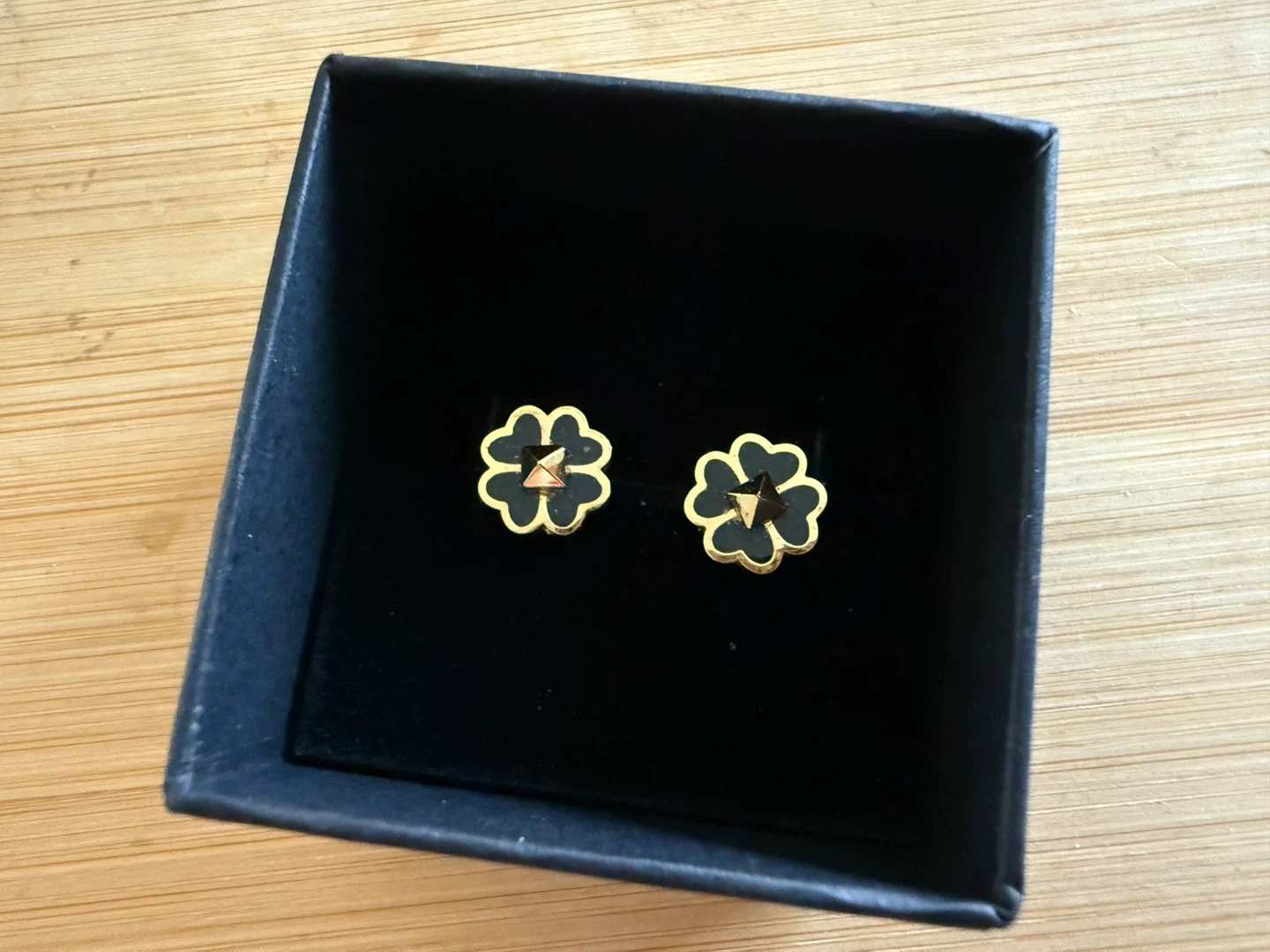 Cute clover-shaped studs in black and gold from Kate Spade. They are perfect for daily use. Easy to match with different outfit. These earrings are in great condition and ready for a new home.