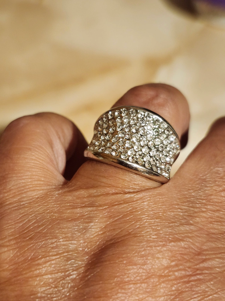 Selling a beautiful silver ring with sparkly stones. It's in great condition and ready for a new home! It would make a lovely addition to any jewelry collection