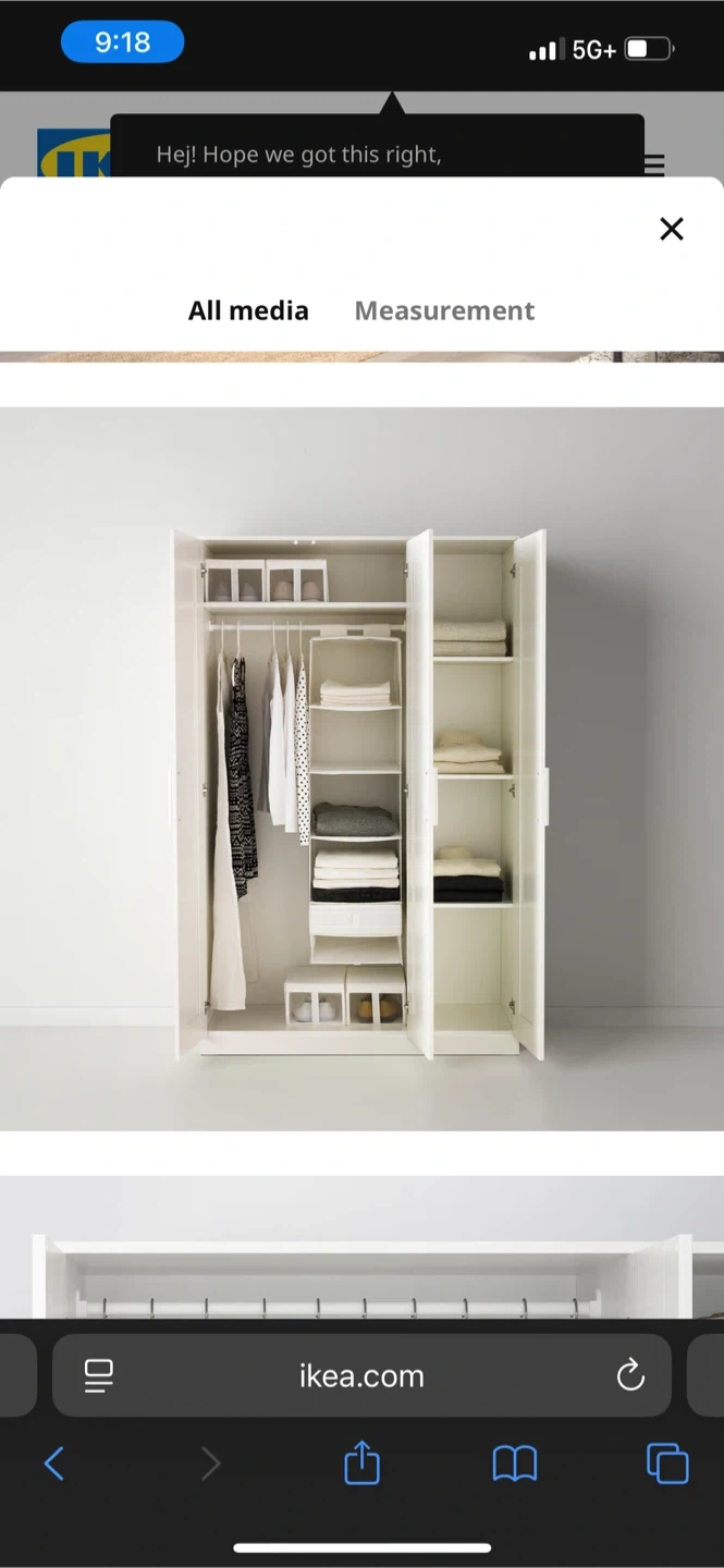 Selling a gorgeous large white IKEA wardrobe! It's in great condition and perfect for organizing your clothes and maximizing space. Large space for hanging clothes on one side, 4 shelves for stacking on the other, plus an additional bottom storage space.