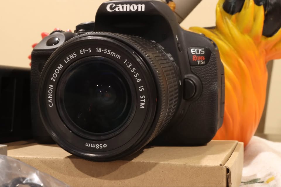 Barely used Canon Rebel T5i (Shutter~2600) with a sharp Canon EF-S 18-55mm STM Lens.