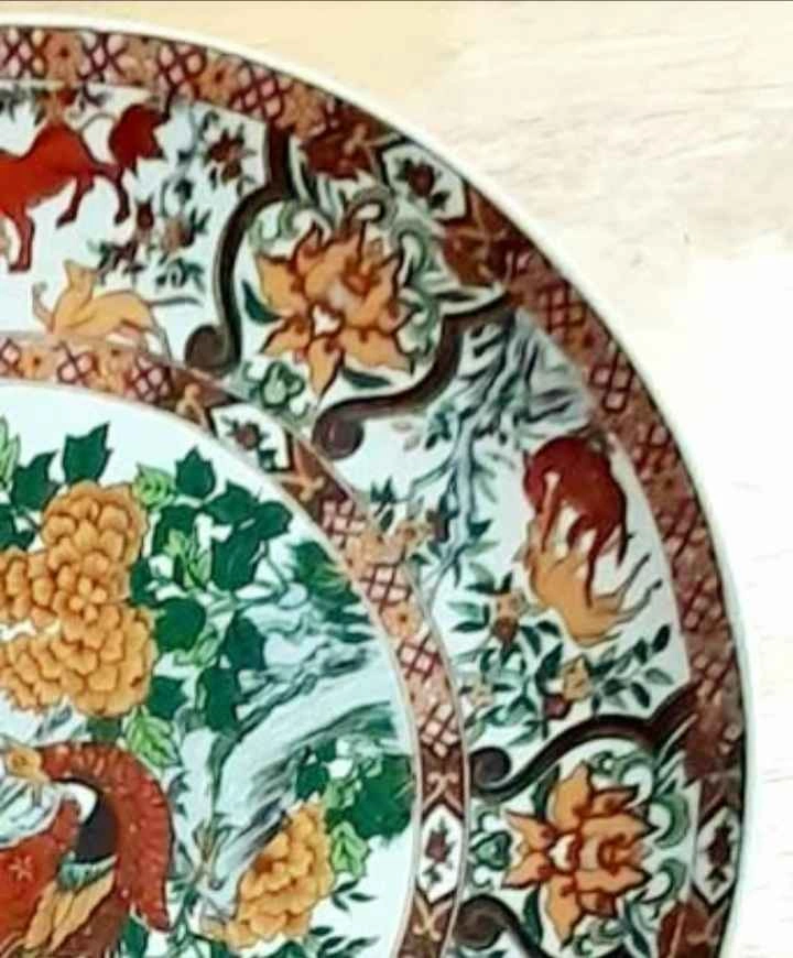 Fine China ,Saji Decorative Table Plate With Table Stand. Theme : Pheasants & Flowers Pattern. Diameter : 24 cm - 9.50 inches. Stamped :