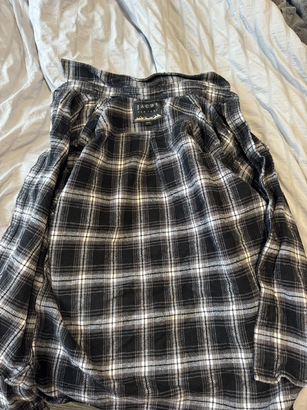 Cozy up in this classic JACHS flannel shirt! It's a black and white plaid pattern, perfect for layering or wearing on its own. Size medium and in great condition, ready for a new home