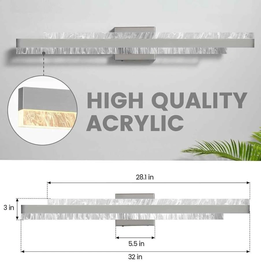 Brand New light fixture. It comes in original box with hanging hardware. * Price per only one light fixture ** Multiple lights available Retails at Amazon for $147 ($130 + tax). Save your money. Pickup from south London. I can deliver in London for an extra fee. HAHZT Modern Bathroom Vanity Light: Brushed Nickel 32 inch 28W Dimmable LED Bath Bar Light Fixtures Over Mirror - Wall Sconce Picture Lights for Paintings Cabinets Bedroom 3000k Product details: Brand: HAHZT Colour: Nickel Material: Metal, Acrylic Style: Modern Light fixture form: Wall Room type: Bathroom Unique Design - HAHZT bath vanity light for mirror features an exquisite and modern design, adding a new and fashionable decor to your bathroom using smoke acrylic which is unique pattern for each light, stylish & classic High-Quality Materiel - Made with sturdy aluminium and exquisite matt black finish, and the unique smoke acrylic light bar cares for eyes health, which is much more durable, and can get through years of usage Dimmable - This lighting fixture can be easily dimmed by using the wall switch, providing you with the flexibility to adjust the brightness according to your preference, Please note that it does not have a separate switch or cord for pull Easy Installation- Modern bathroom lamp can be easily installed by connecting it directly to the reserved wires, adhering to the standard US junction box, Even if you're a novice installer, you can have this light up and running in just a few minutes, It provides a non-dazzling and glare-free illumination Wide Application - HAHZT bathroom LED vanity light: 32 inch long, 2.15 inch extend from the wall, 4.33 inch wide, Ideal for using as lighting in bathrooms, bedrooms, over hospital beds, hallways, corridors, study rooms, stairways, workplaces, restaurants, hotel receptions, painting