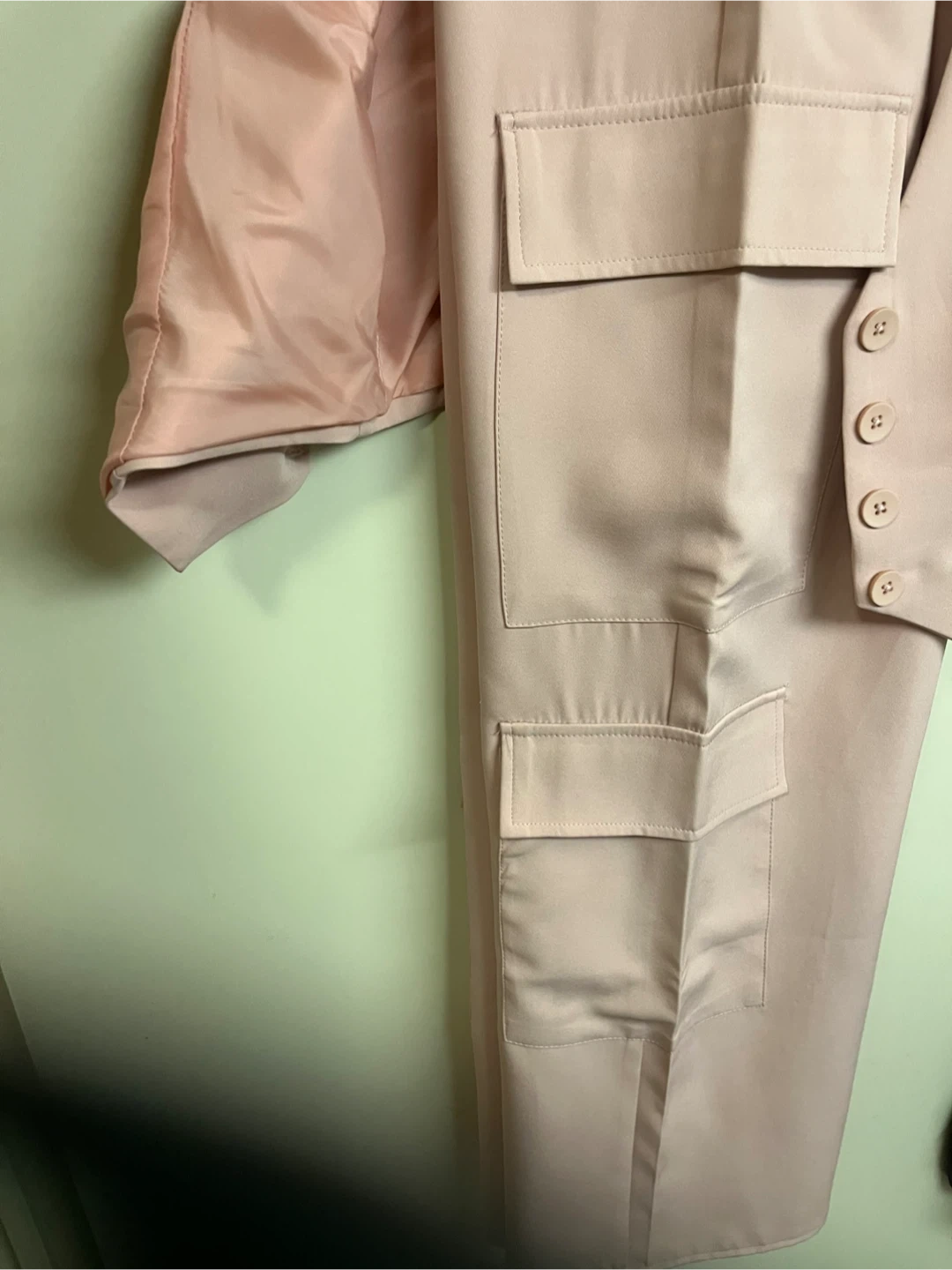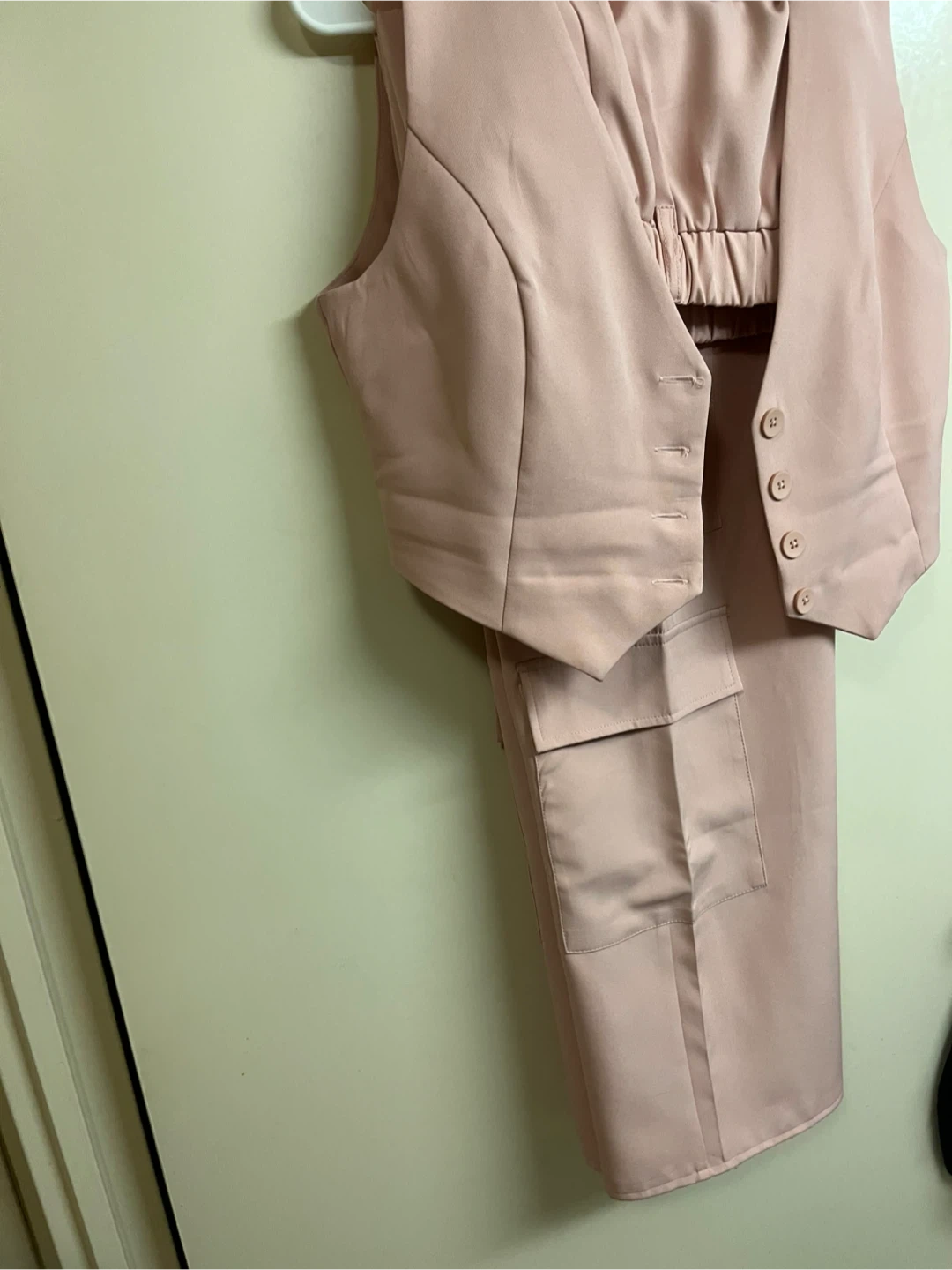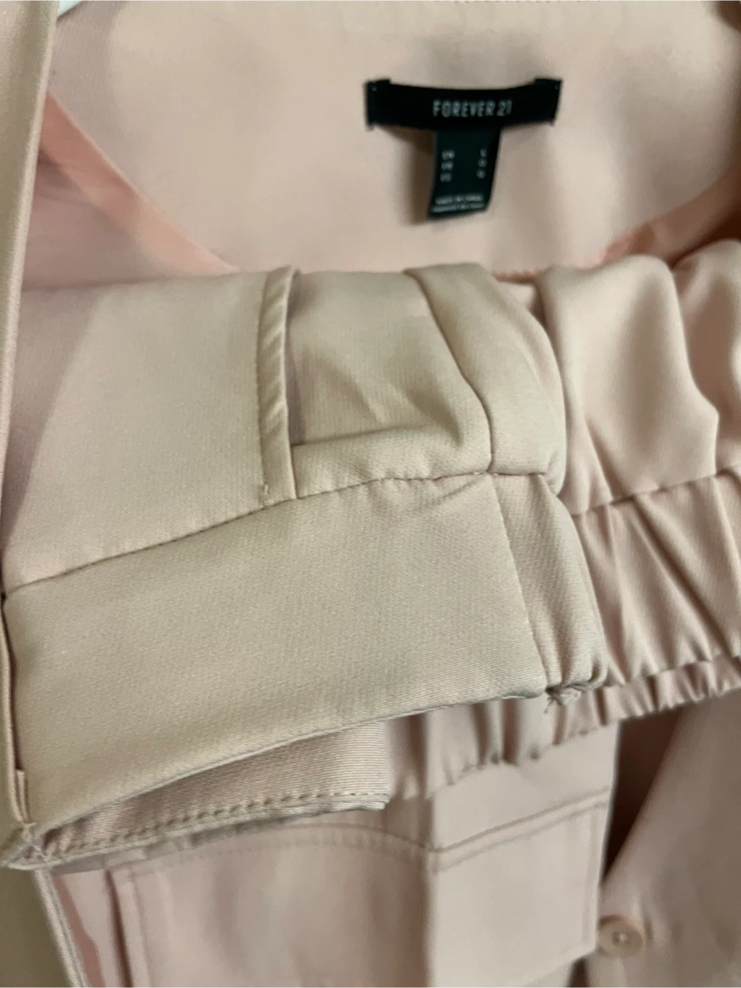 Selling a cute Forever 21 two -piece set in a lovely light pink colour! It includes a nicely lined vest, and dressy cargo bottoms. Perfect for dressing up or down. Size large $10 Very nice set.