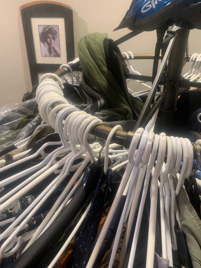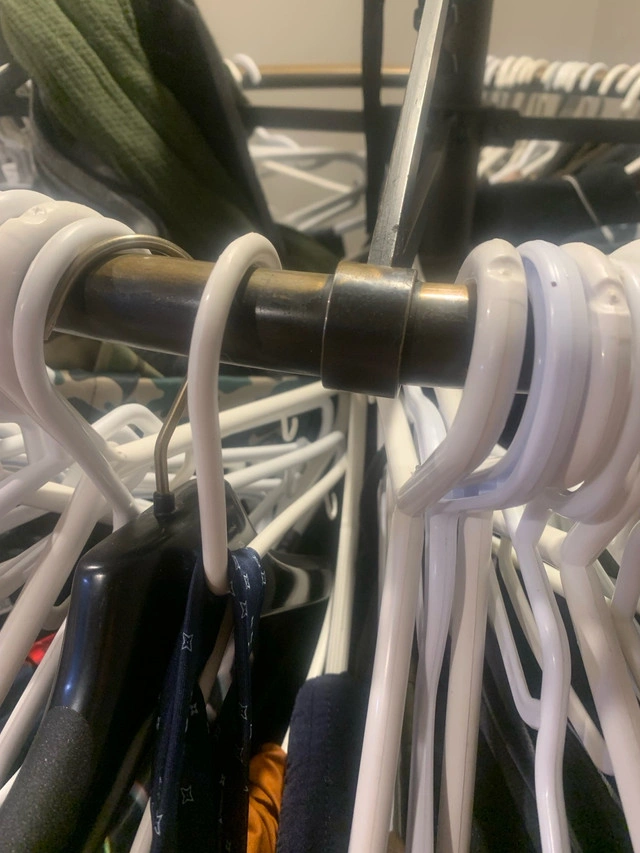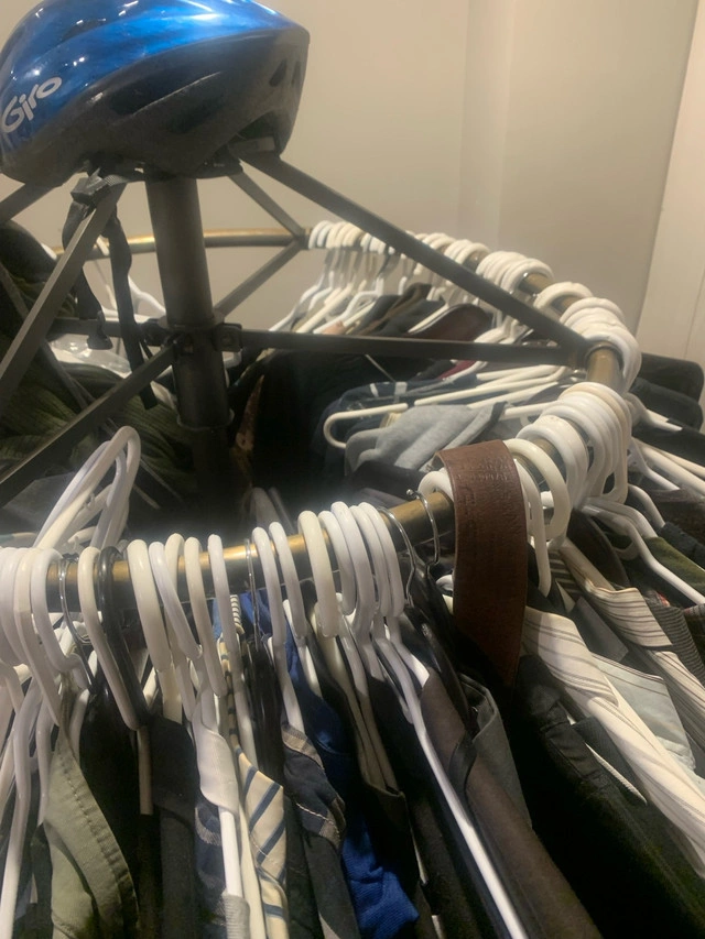 This is an amazing used steel quality round clothes rack that is perfect for organizing your wardrobe. It has a sturdy construction and can hold a lot of clothes. The photos should give you a good idea of its condition. It has served me well, but I'm downsizing and need to find it a new home. It is a great solution for additional closet space or for organizing your clothing in a stylish manner. If you see this ad, yes, it's still available! I paid over $200 and now must sell. It’s one 3 pcs and has wheels. Assembles in about 1 minute.