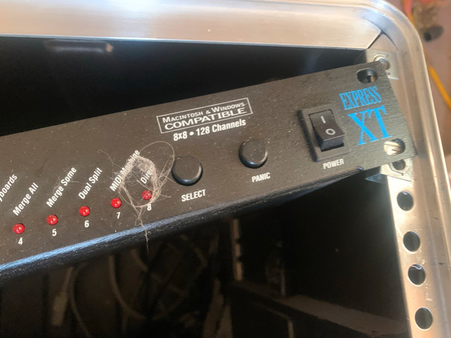 Selling my vintage keyboard synth rack and hard case, perfect for musicians and collectors interested in classic sound modules and MIDI devices. This used setup includes: an Alesis D4 drum module, an Akai S2000 sampler, a Vintage Keys module, an Opcode MIDI Express XT interface and a SKB hard case. It's all in great condition, and should all be fully functional for creating those classic 90s techno / dance / ebm / house / whatever sounds!