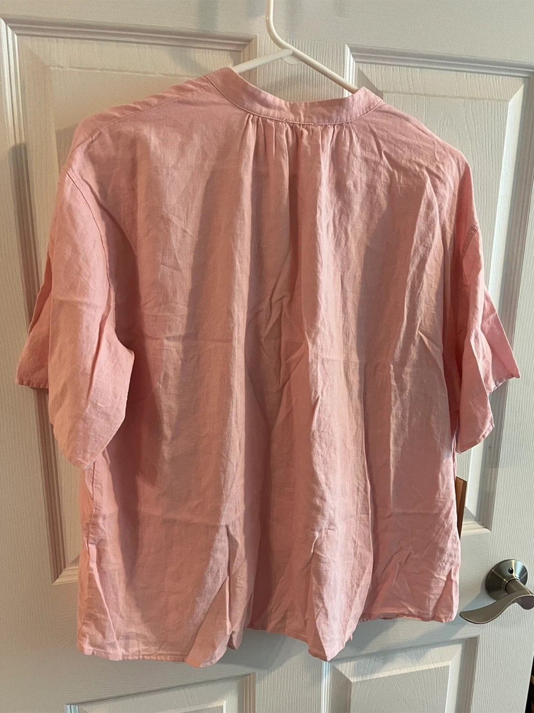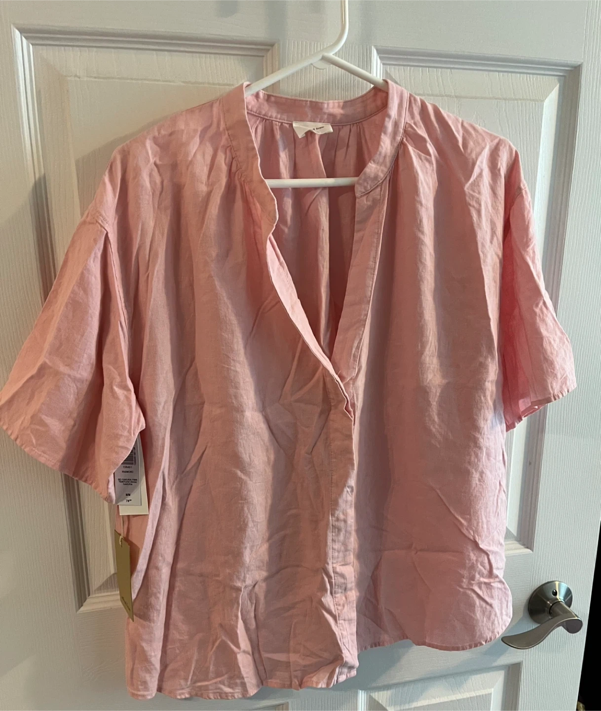69Brand new with tags. Selling a Hanoki blouse from Aritzia in a lovely sakura pink colour. It's a size M. Orig retail $78.