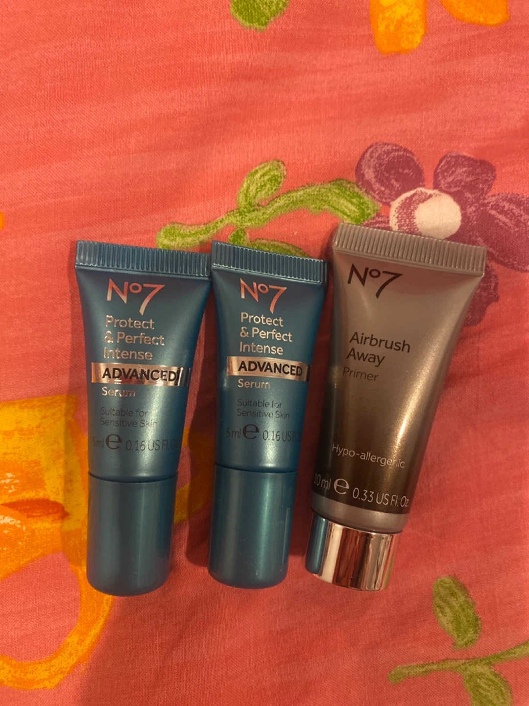 Selling a No7 skincare set! Includes two Protect & Perfect Intense Advanced Serums (5ml each) and one Airbrush Away Primer (10ml)