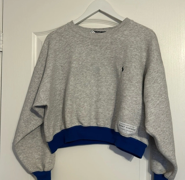 Stylish upcycled Goat Vintage Ralph Lauren cropped sweatshirt, perfect for adding a touch of vintage flair to your wardrobe! This item is in brand new and features a unique design with the iconic Ralph Lauren logo. Additional details: * Brand: Ralph Lauren x Goat Vintage * Size: XL * Colour: Grey and Blue * Cropped Style unique collaboration with Goat Vintage. Don't miss out—it's a real gem! OBO Please take a look at my other listings Bundle and save!