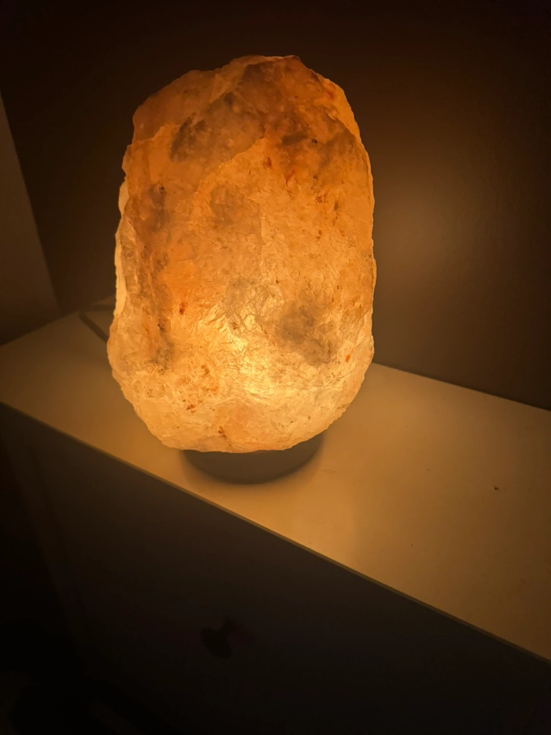 Selling a Himalayan salt lamp. It emits a warm, soothing glow, perfect for creating a relaxing atmosphere in any room. It's in great condition and ready to bring some zen to your space